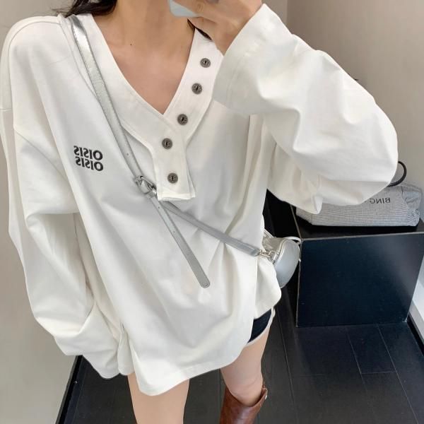 Youlaile studio RICE CAKE OISIS 3色展開 フロントボタン Vネック 長袖 トップス プルオーバー トップス が入荷しました。
