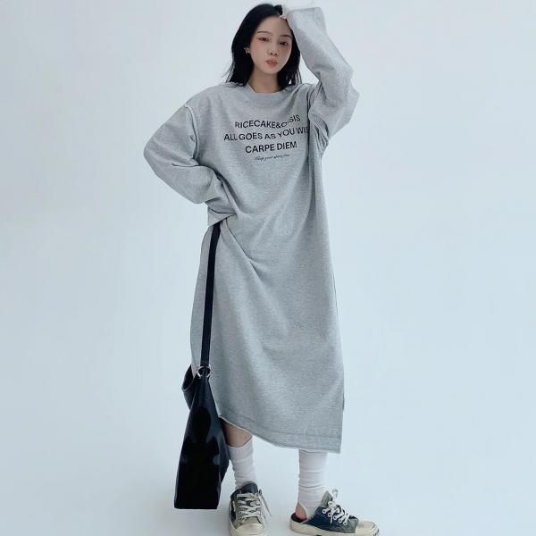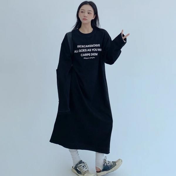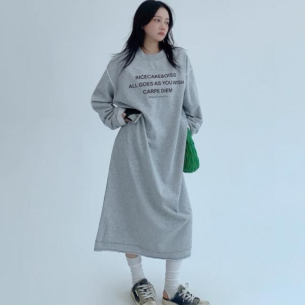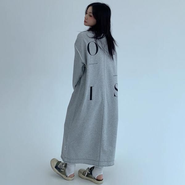 【大特価】Youlaile studio RICE CAKE OISIS 2色展開 フロントロゴ 長袖 マキシワンピース ロングワンピース リラックスワンピース ワンホン インポート 通販