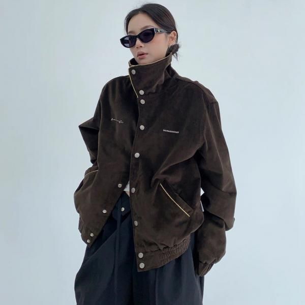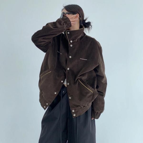Youlaile studio RICE CAKE OISIS ブラウン 襟付き フロントボタン トリムデザイン コーデュロイジャケット ワンホンが入荷しました。
