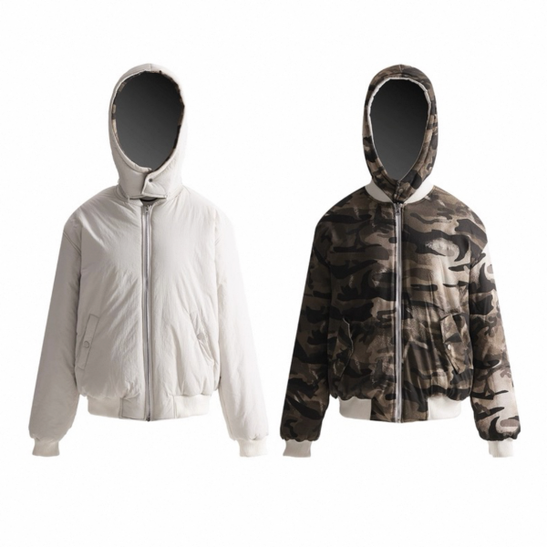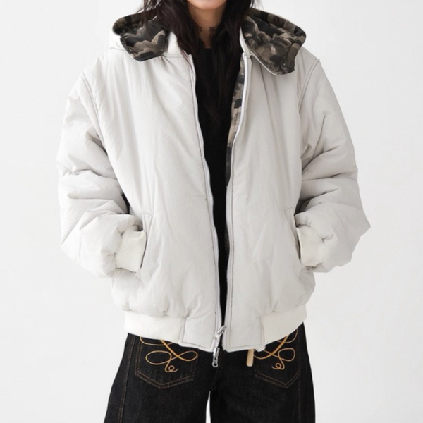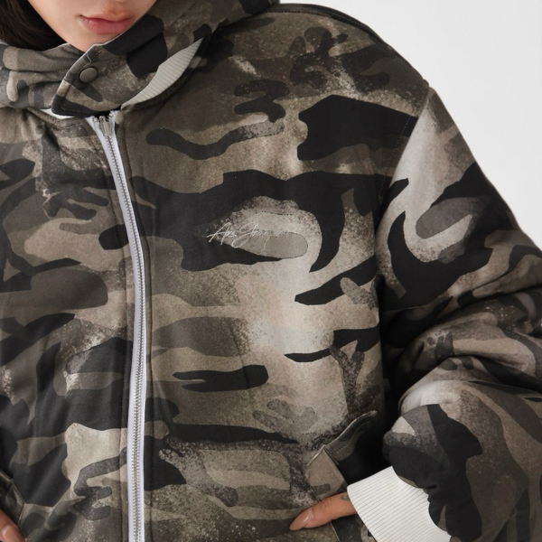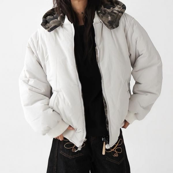 AceStudios 2way ホワイト リバーシブル 迷彩柄 カモフラージュ柄 ダウンジャケット パファージャケット パーカー フーディーが入荷しました。