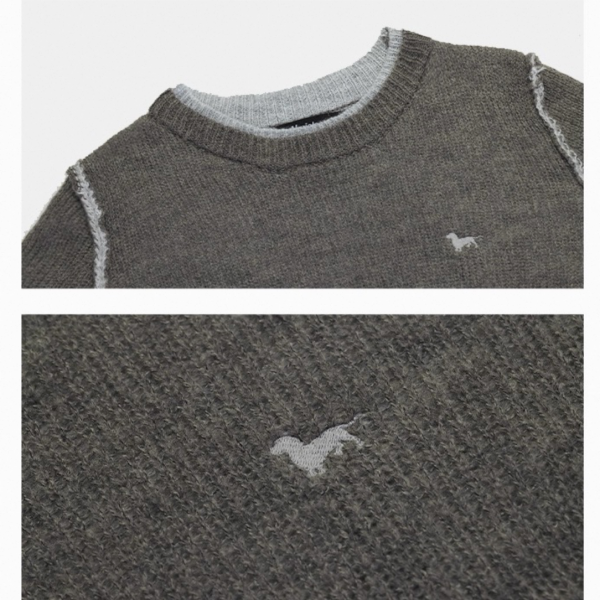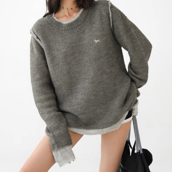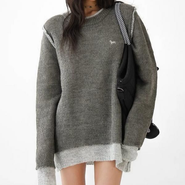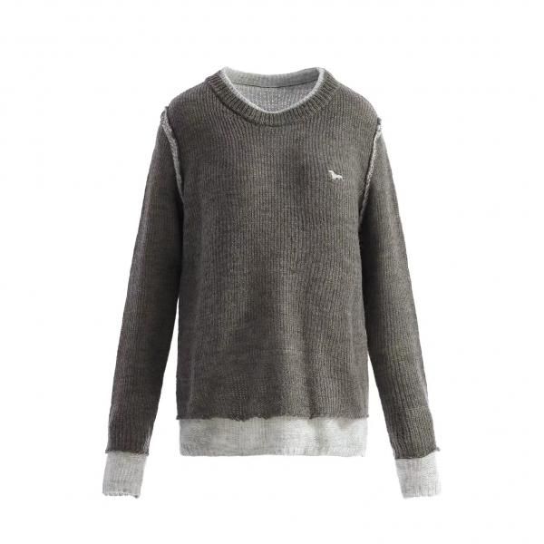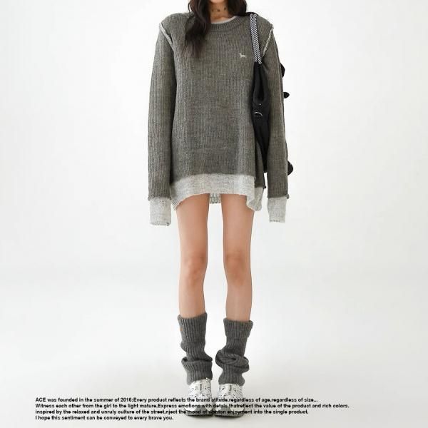 AceStudios グレー レイヤード 重ね着風 パッチワークデザイン ニット セーター トップス プルオーバーが入荷しました。