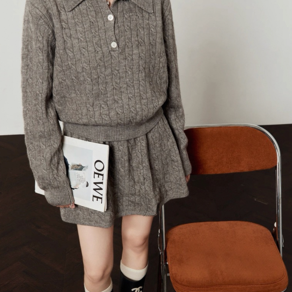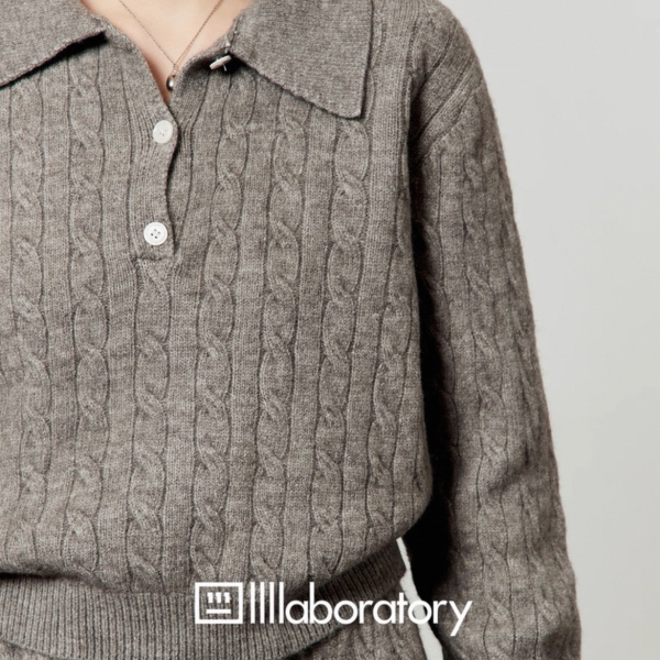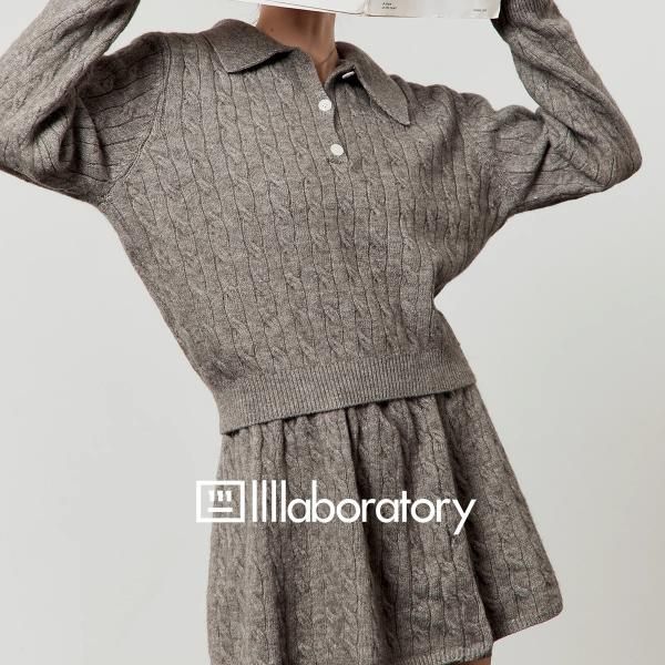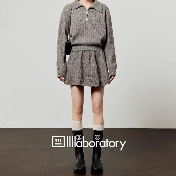 LLL LAB グレー ケーブル編み 襟付き ニットポロシャツ ニット セーター トップス ニットスカート ミニスカート ニットアップ セットアップ ワンホンが入荷しました。