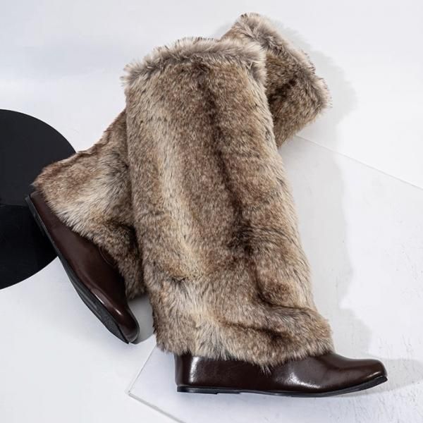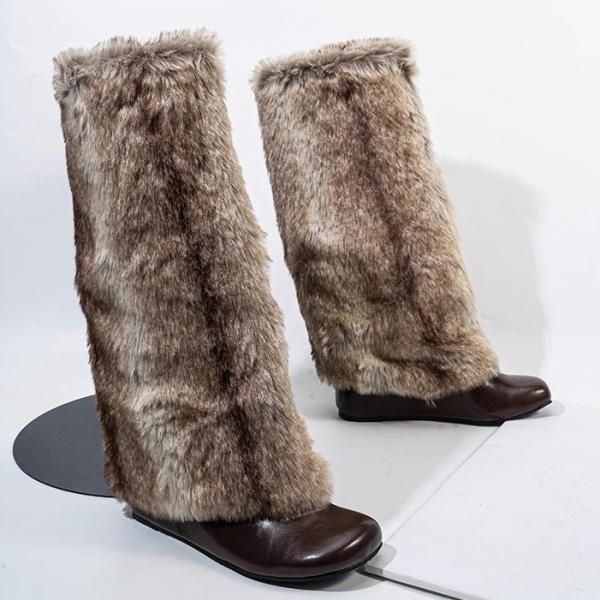 ブラウン 異素材切替 フェイクファーブーツ モンスターブーツ ロングブーツ ファーブーツ が入荷しました。