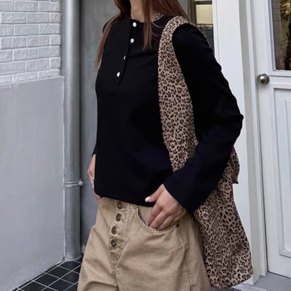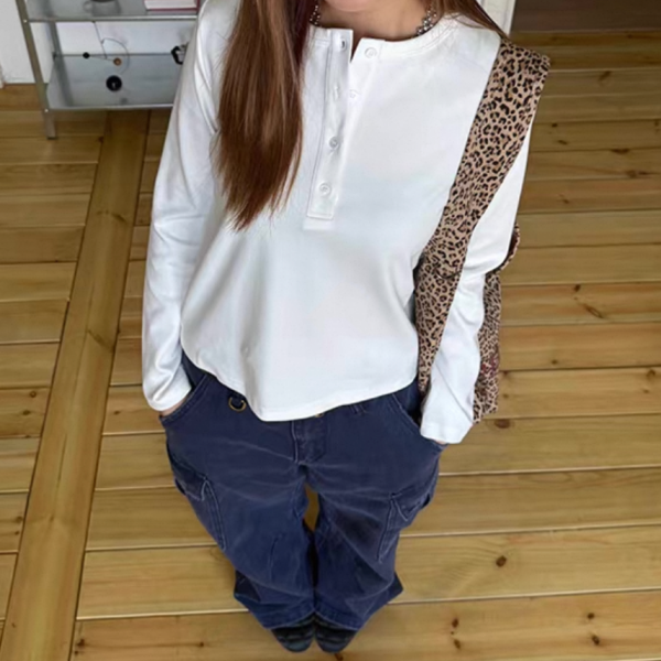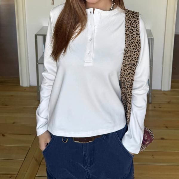 CCYE 2色展開 無地 シンプル ヘンリーネック フロントボタン クルーネック 長袖 ロンT トップス カットソーが入荷しました。