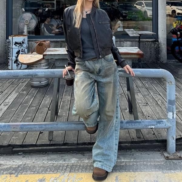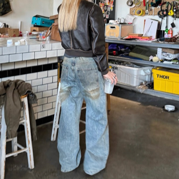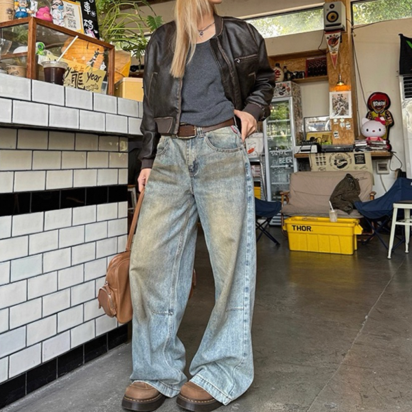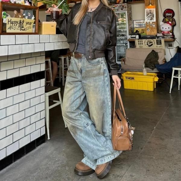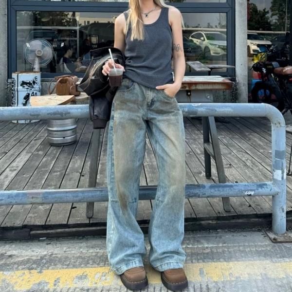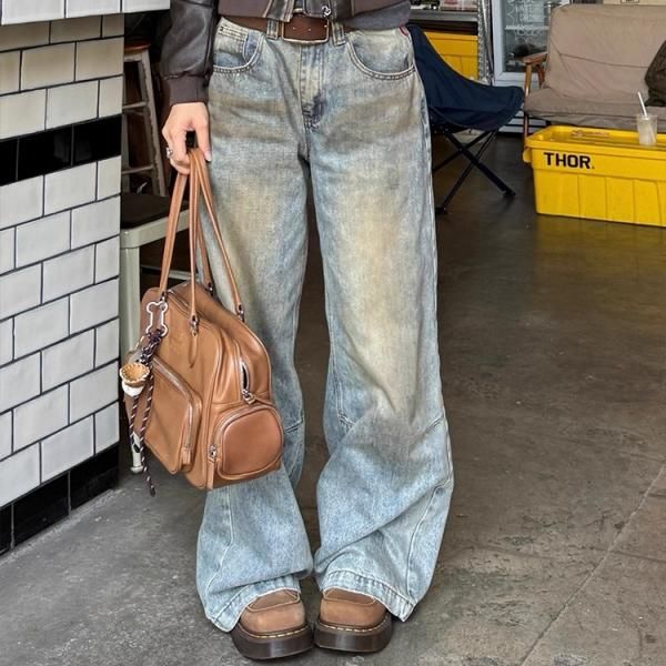 CCYE ブルー ビンテージ風 ウォッシュ加工 ストレートデニムパンツ ジーンズ ワイドレッグデニムパンツ ワイドデニムパンツ ワンホンが入荷しました。