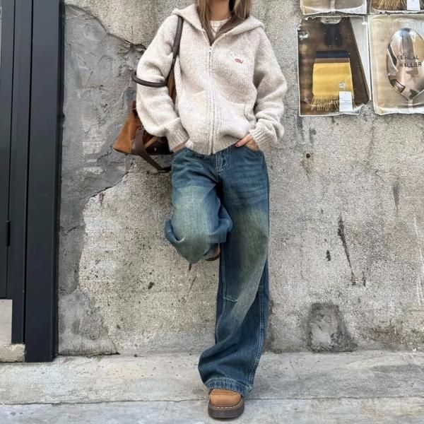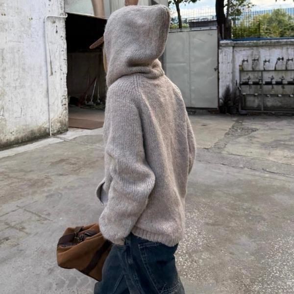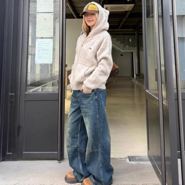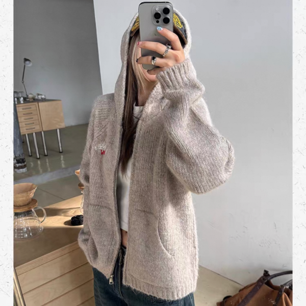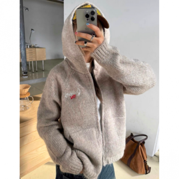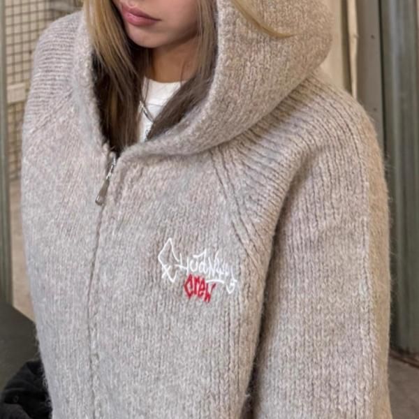 CCYE ベージュ 刺繍デザイン ロゴデザイン ジッパー ジップアップ ファスナー ニットパーカー フーディー ニットジャケット ワンホンが入荷しました。