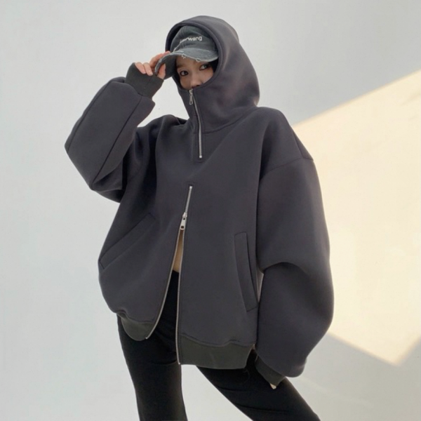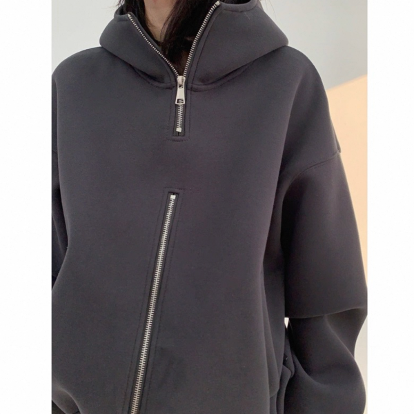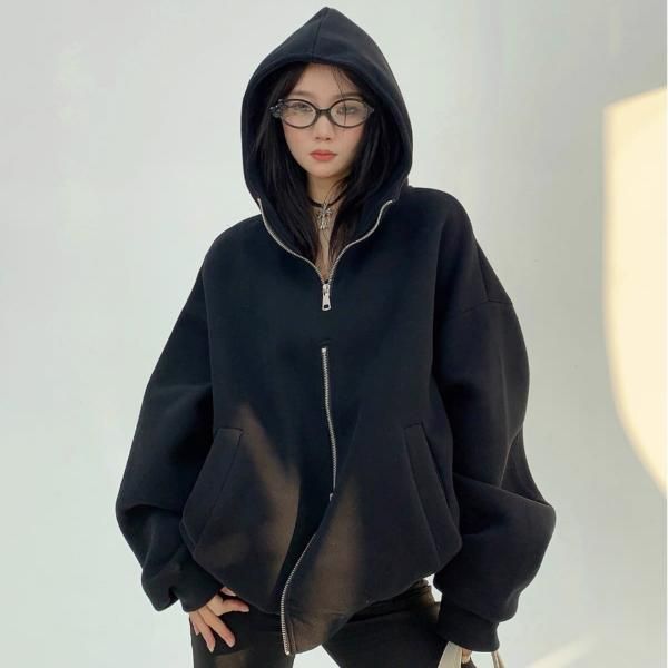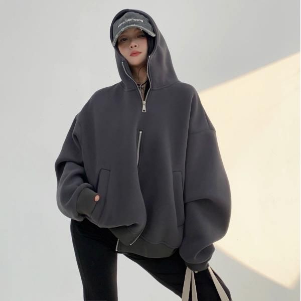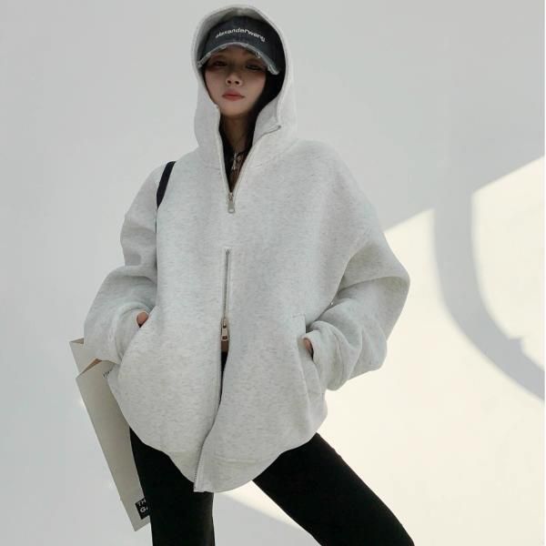 【大特価】Youlaile studio RICE CAKE OISIS 3色展開 無地 シンプル ダブルジッパー ジップアップ ファスナー スウェット パーカー フーディー ジャケット ワンホン
