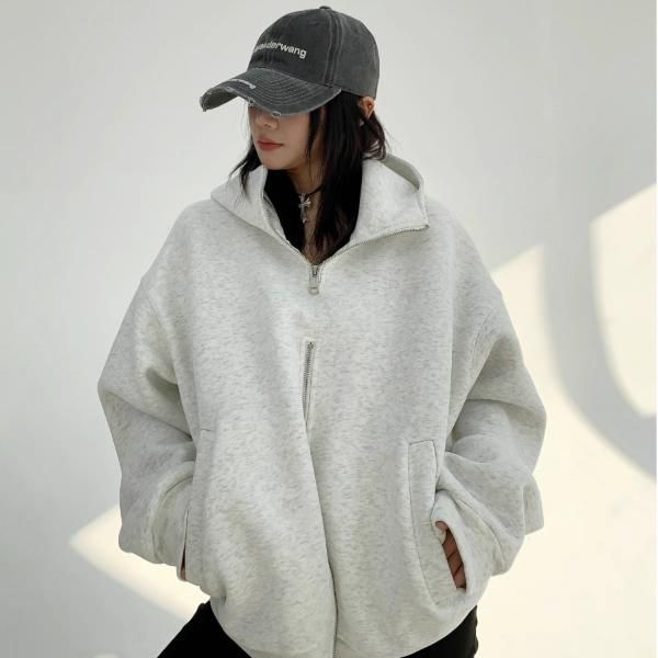 Youlaile studio RICE CAKE OISIS 3色展開 無地 シンプル ダブルジッパー ジップアップ ファスナー スウェット パーカー フーディー ジャケット スタンドカラー ワンホンが入荷しました。