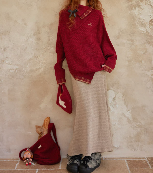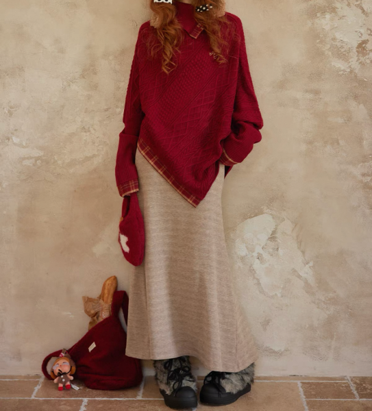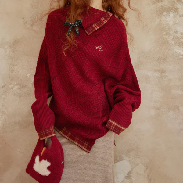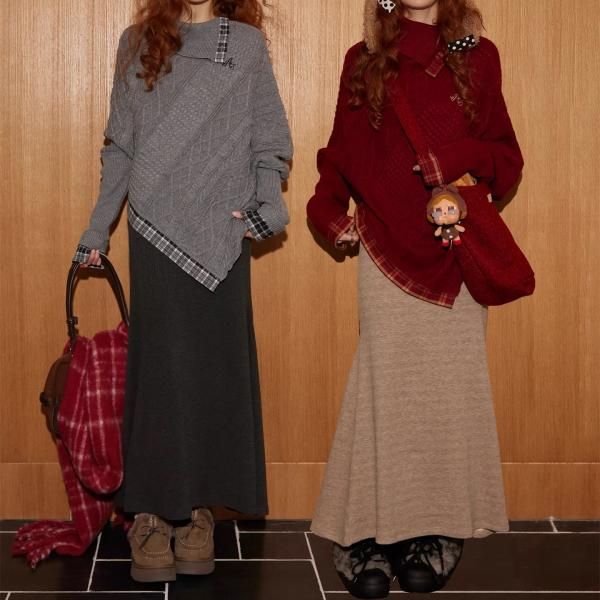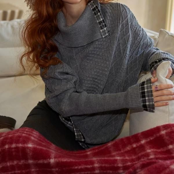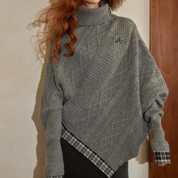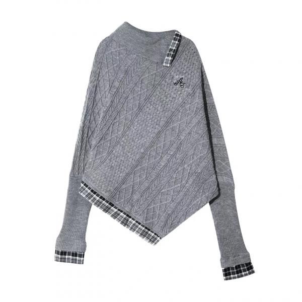 ASGONY 2色展開 チェック柄 変形デザイン ドルマンスリーブ ニット セーター トップス が入荷しました。