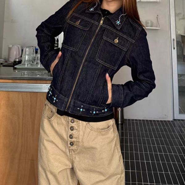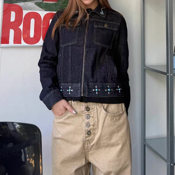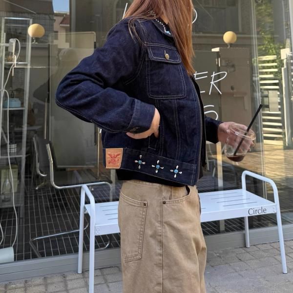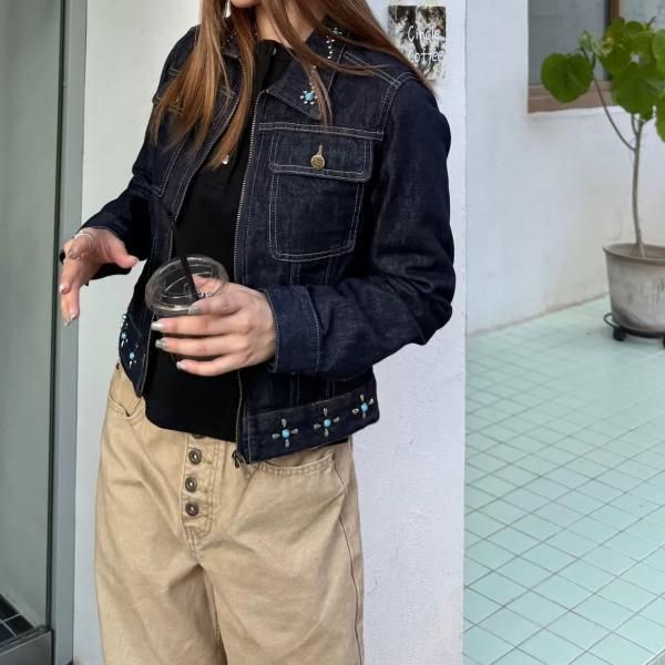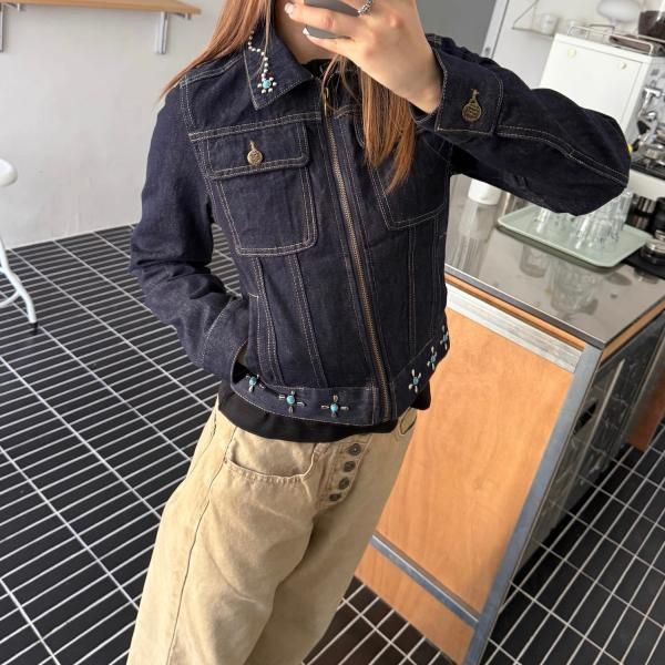 CCYE ネイビー インディゴ スタッズ ターコイズ トリムデザイン クロス 十字架 デニムジャケット トラッカージャケット ワンホンが入荷しました。