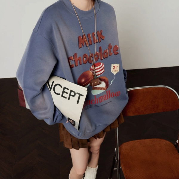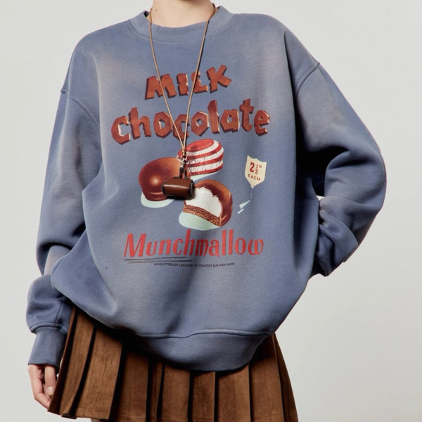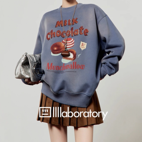 LLL LAB パープル milk chocolate フロントプリント ビンテージ風 スウェット トレーナー プルオーバー トップスが入荷しました。