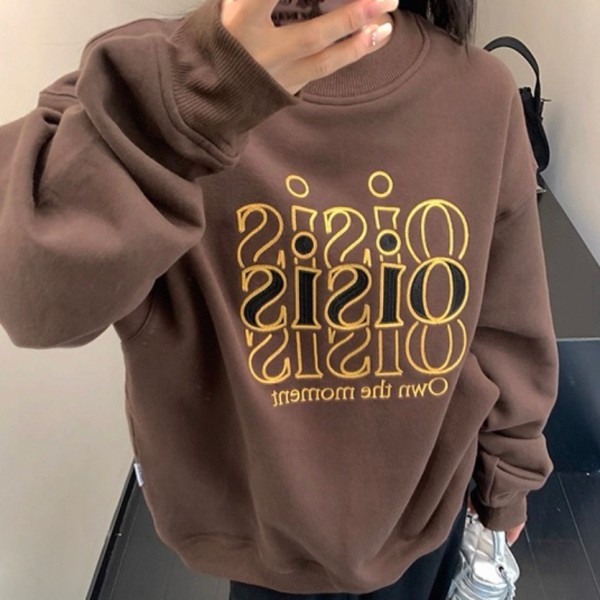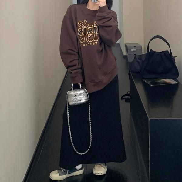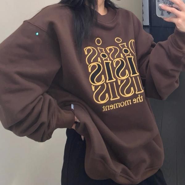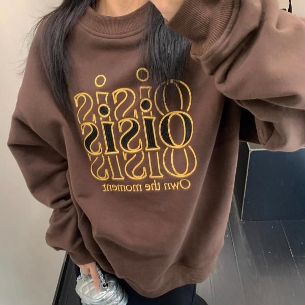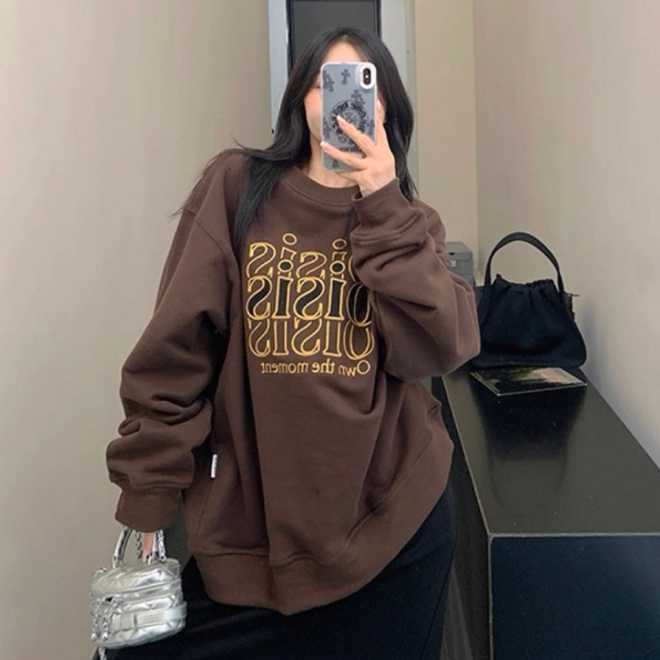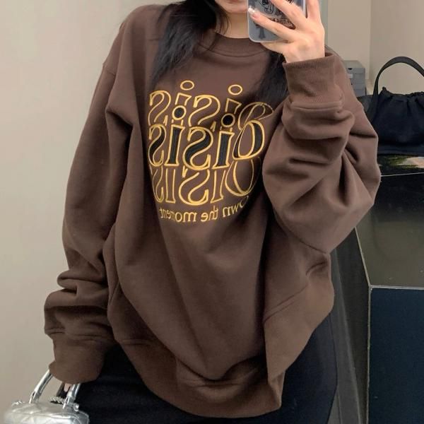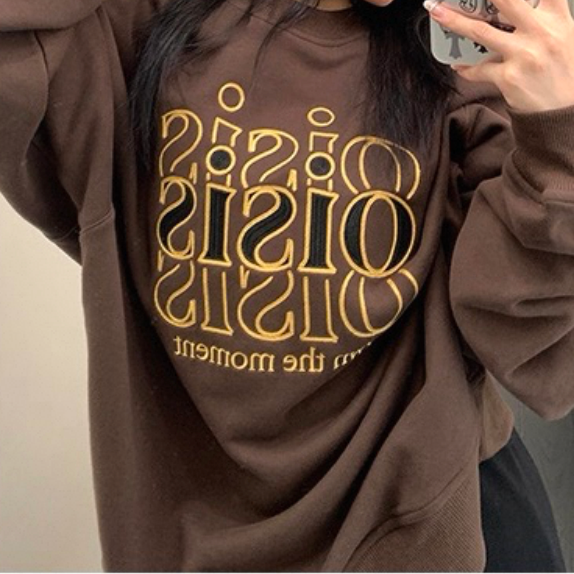 Youlaile studio RICE CAKE OISIS ブラウンxイエロー フロントロゴ オーバーサイズ スウェット トレーナー プルオーバー パーカー フーディー トップス ワンホンが入荷しました。