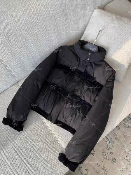 ブラック リボン スタンドカラー ショート丈 ベロア クロップドジャケット ダウンジャケット ブルゾンが入荷しました。