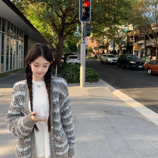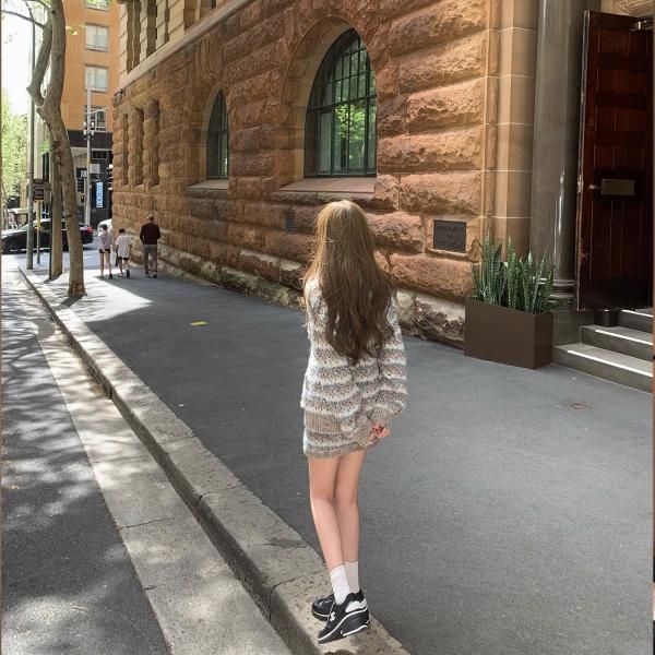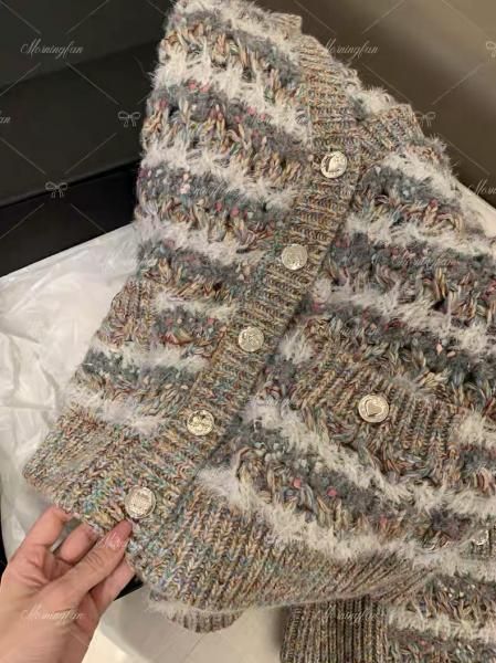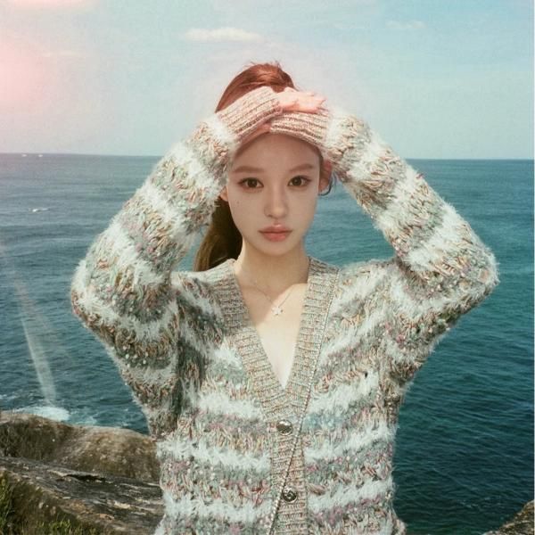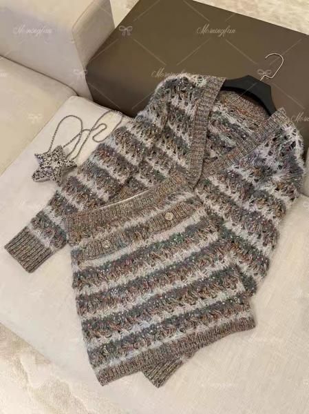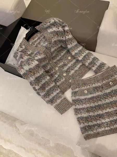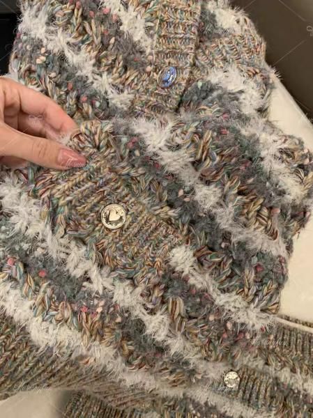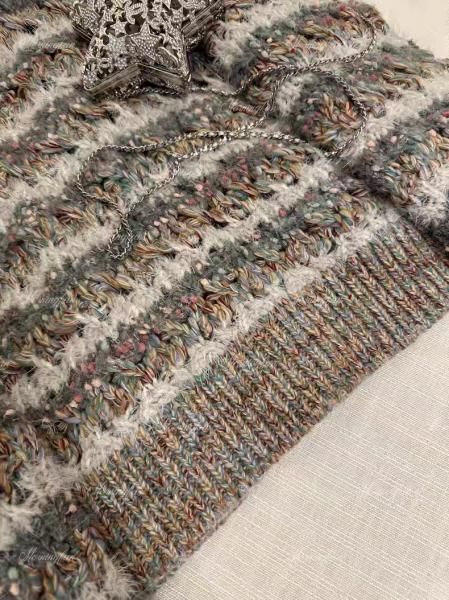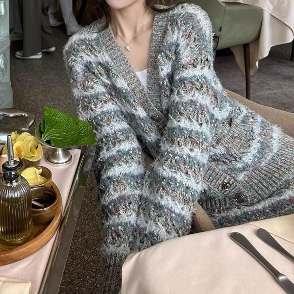 グレー ミックスカラー ストライプ ボーダー Vネック ニットカーディガン セーター トップス ミニスカート ニットアップ セットアップ が入荷しました。