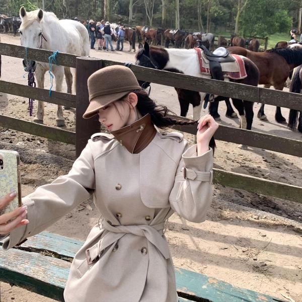 2色展開 2way スタンドカラー ミドル丈 トレンチコート トレンチジャケット ウエストベルトが入荷しました。