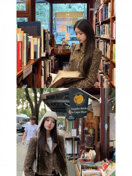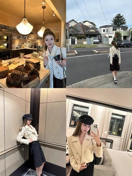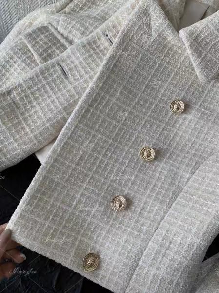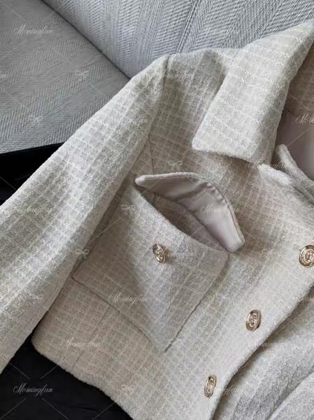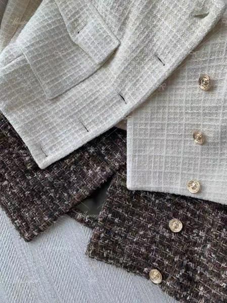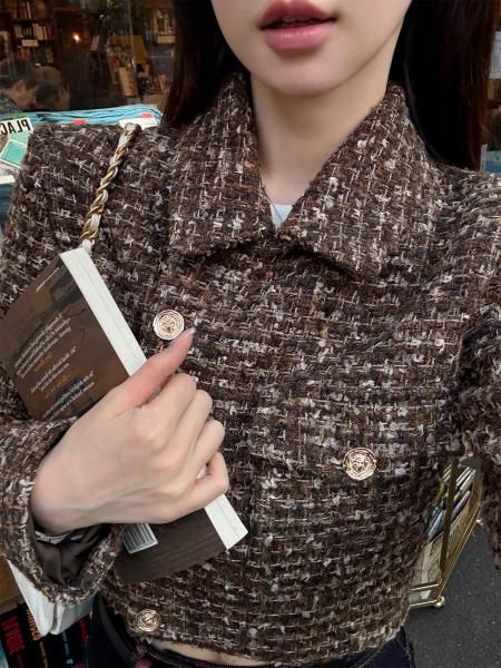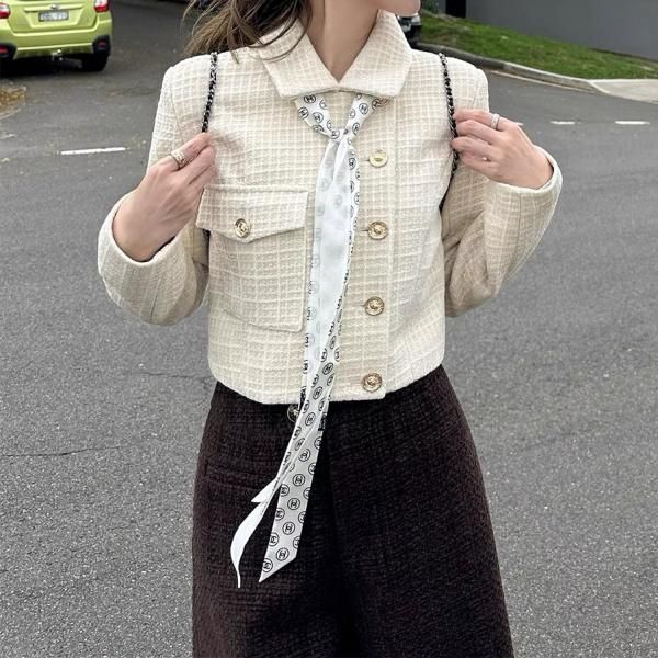 【大特価】2色展開 襟付き サイドボタン シングルボタン ミックスカラー ツイード調 ショート丈 クロップドジャケット 韓国