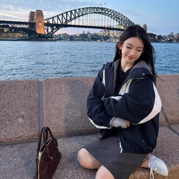 ネイビーxホワイト カラーブロック コントラストカラー ジッパー ジップアップ ファスナー ブルゾン ボンバージャケットが入荷しました。