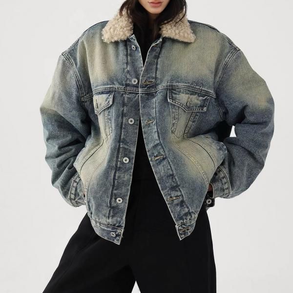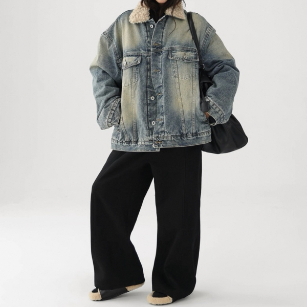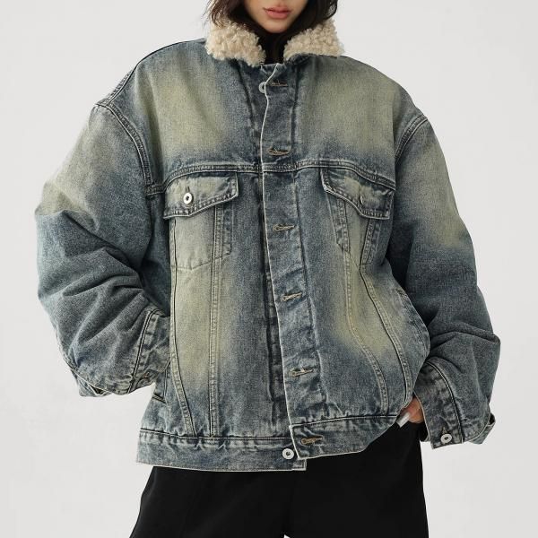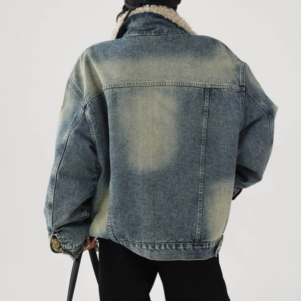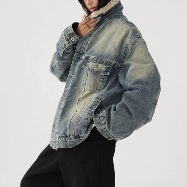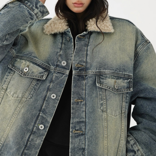 AceStudios ブルー ウォッシュ加工 ビンテージ風 オーバーサイズ ボアカラー ボア襟 デニムジャケット ファー襟 トラッカージャケット Gジャン ワンホンが入荷しました。