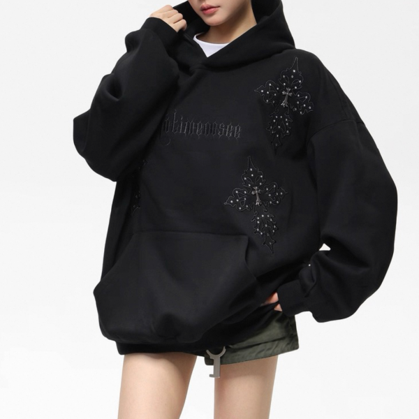 AceStudios 2色展開 クロス 十字架 刺繍デザイン フロントロゴ スウェット トレーナー プルオーバー パーカー フーディー オーバーサイズ トップス ワンホンが入荷しました。