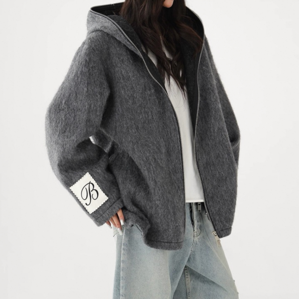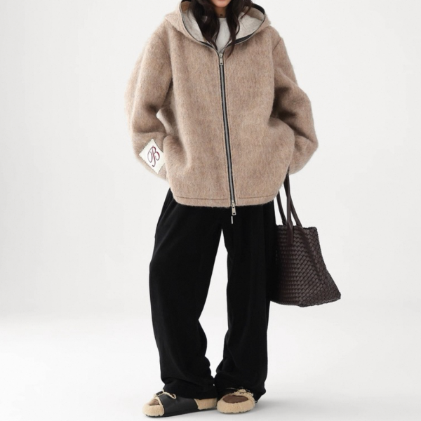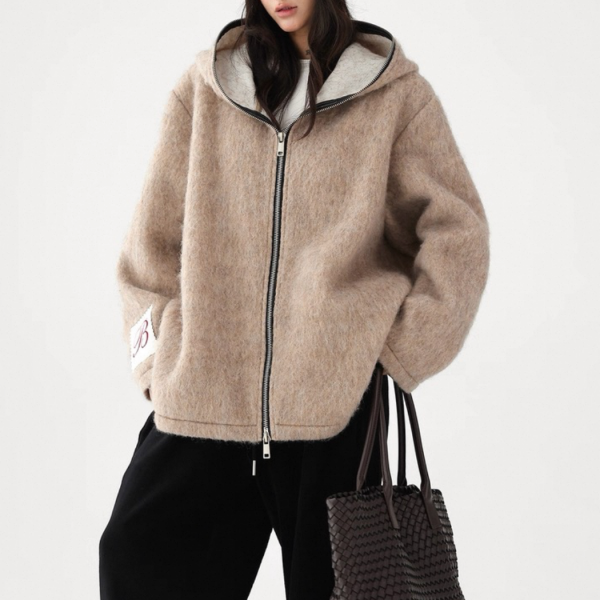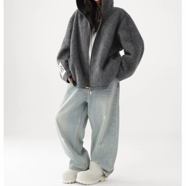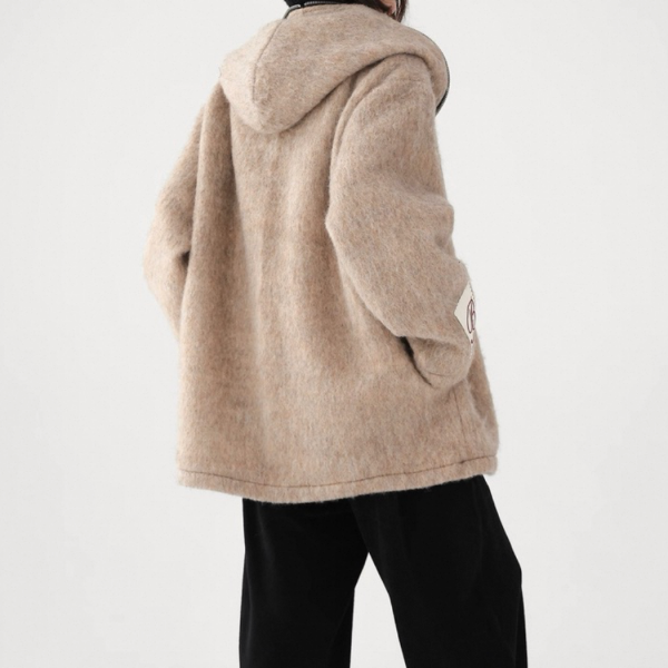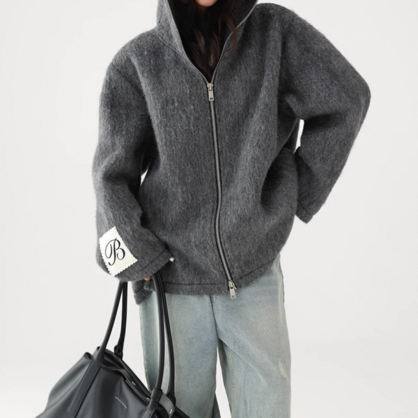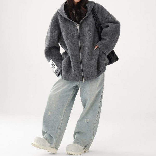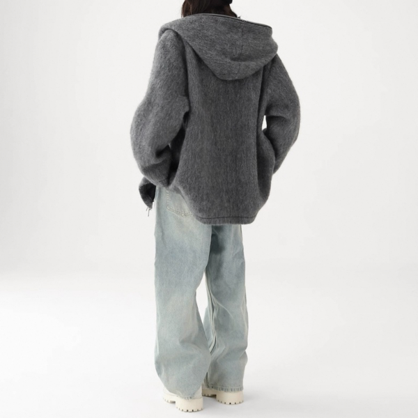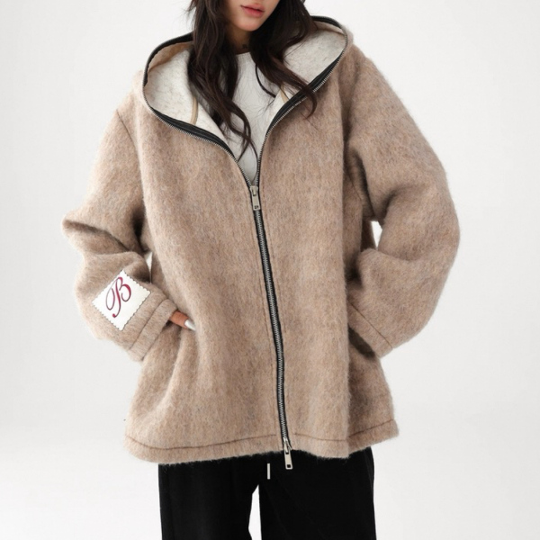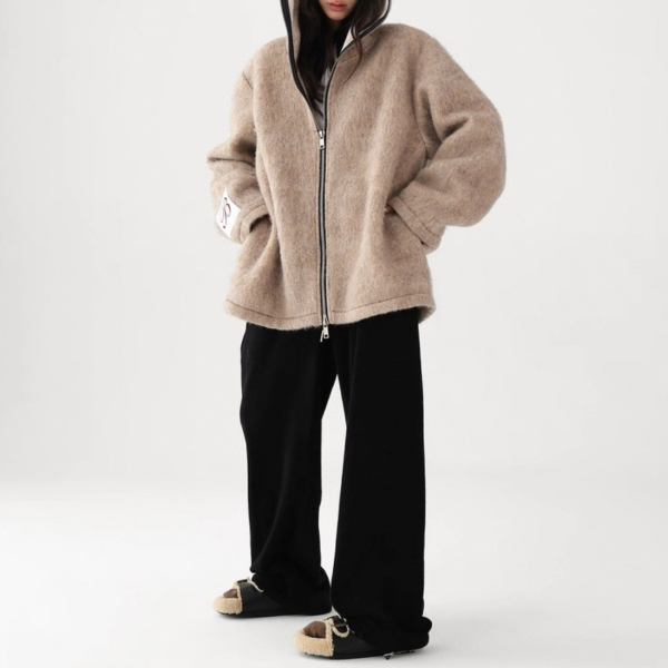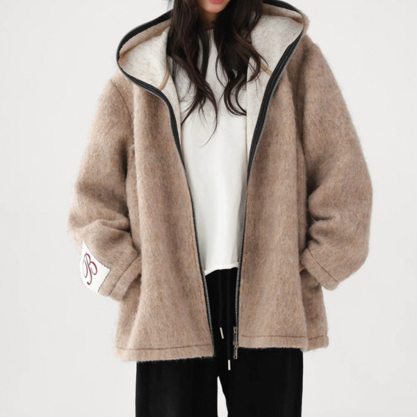 AceStudios 2色展開 無地 シンプル ウール調 ジッパー ジップアップ ファスナー フェイクファー パーカー フーディー オーバーサイズ ジャケット ワンホンが入荷しました。