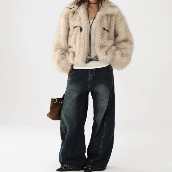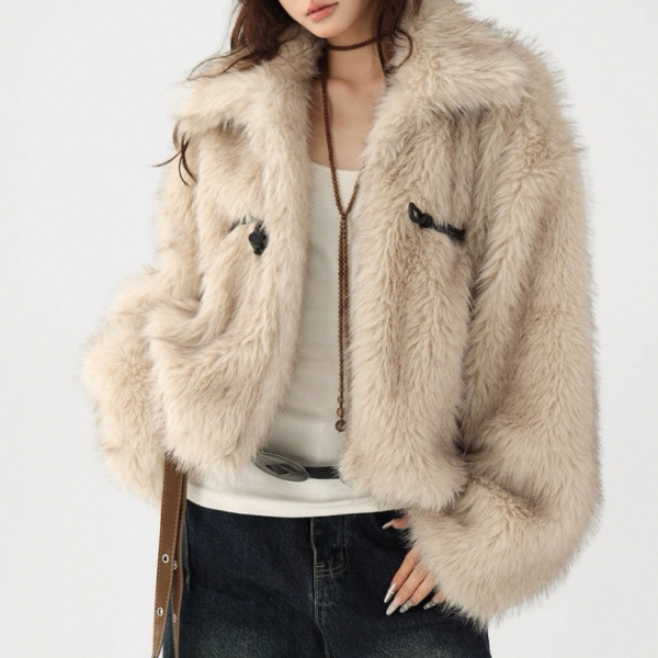 AceStudios ベージュ ダッフルコート トグルボタン 襟付き フェイクファーコート フェイクファージャケット ワンホン が入荷しました。