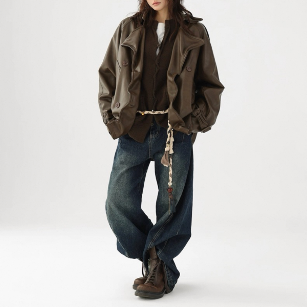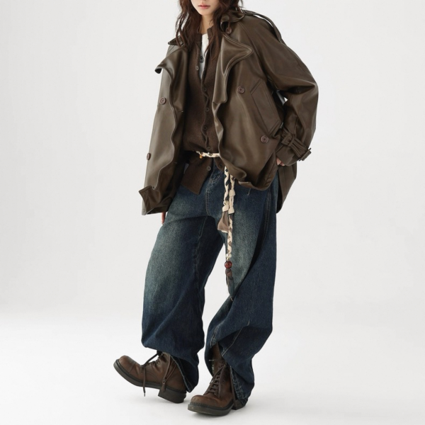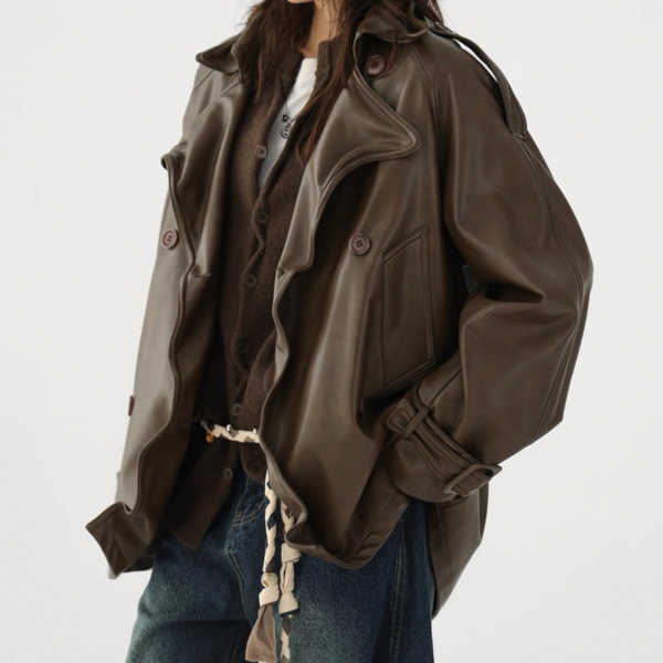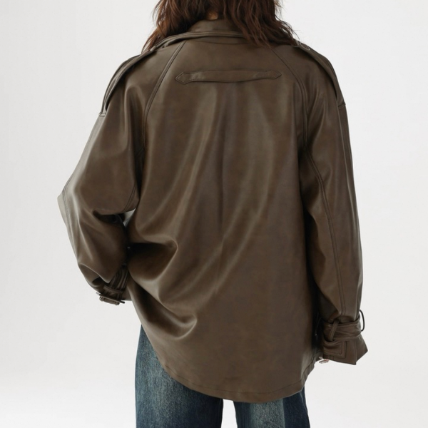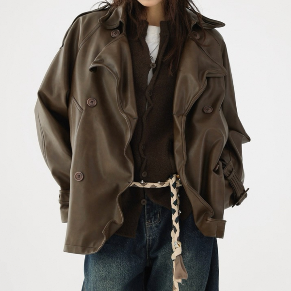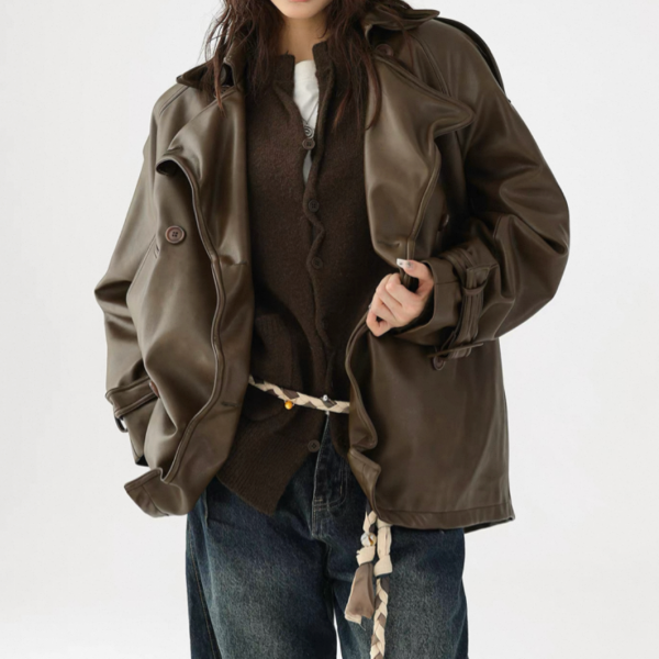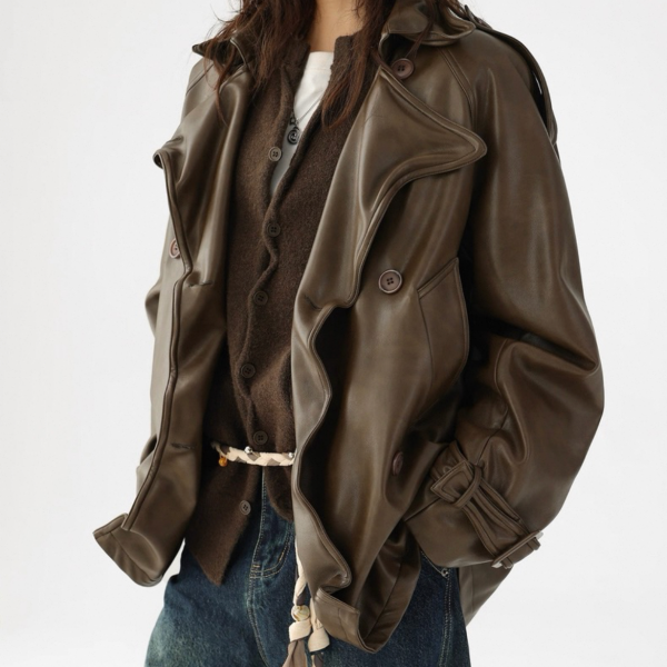 AceStudios ブラウン レザートレンチコート ダブルボタン ダブルブレスト レザージャケット ワンホン が入荷しました。