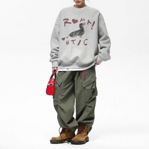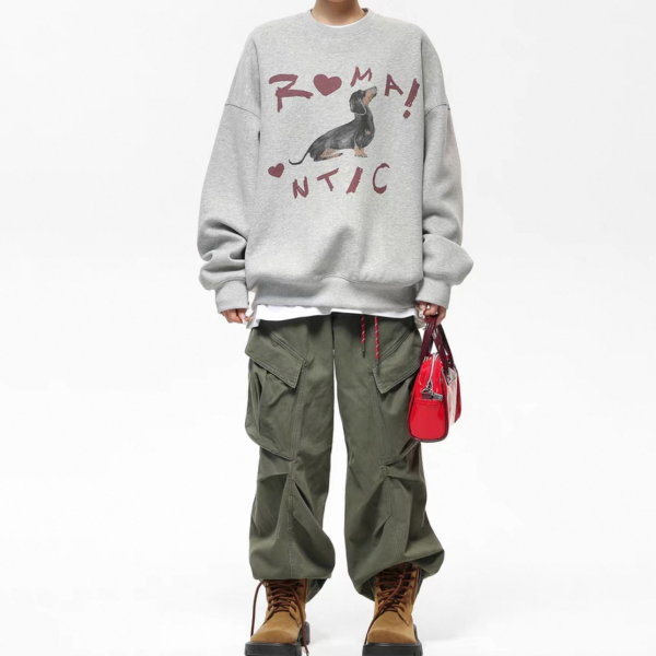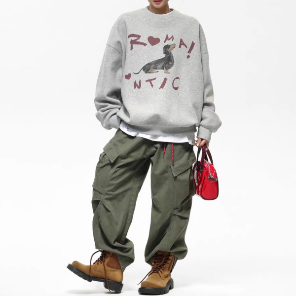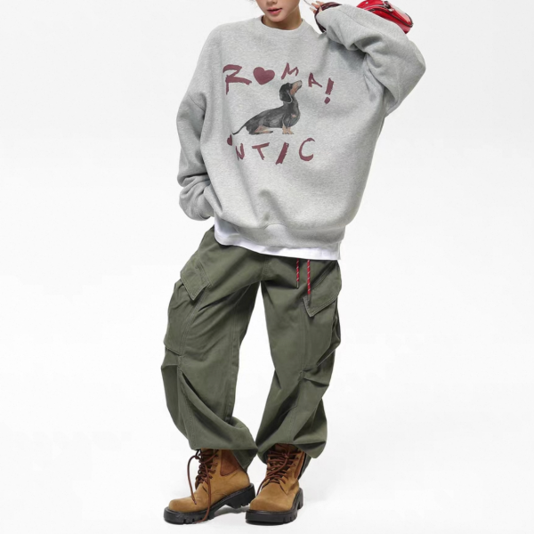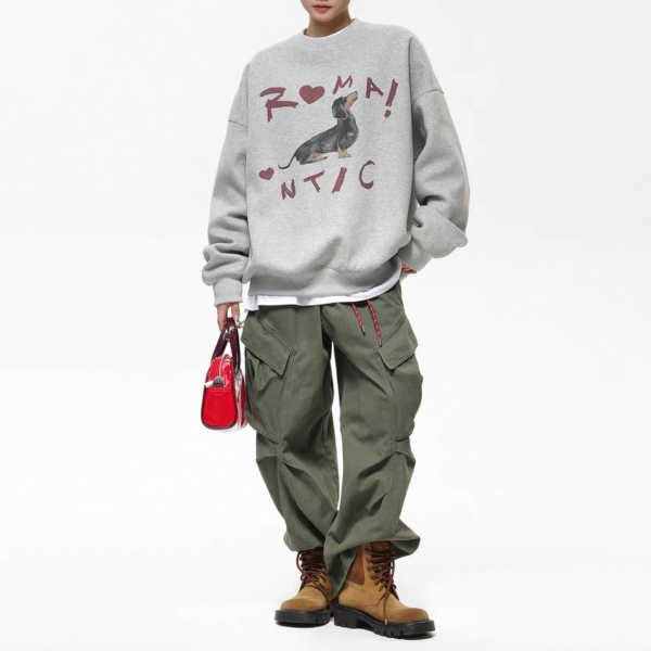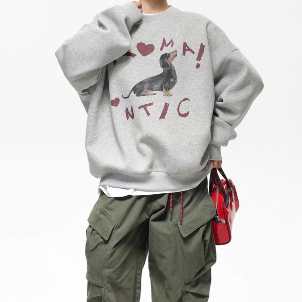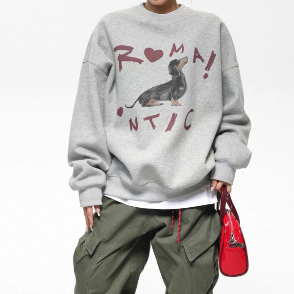 AceStudios グレー ドッグプリント アニマルプリント フロントプリント romantic クルーネック スウェット トレーナー プルオーバー トップス ワンホンが入荷しました。