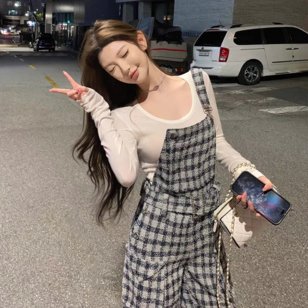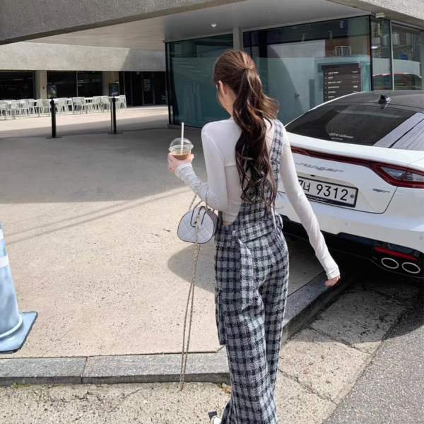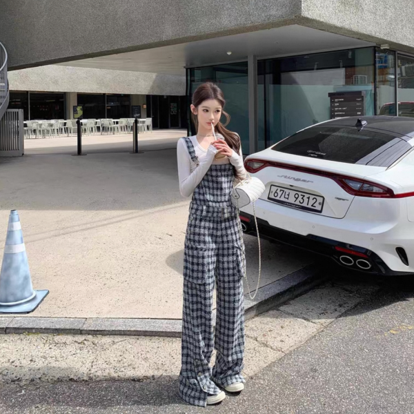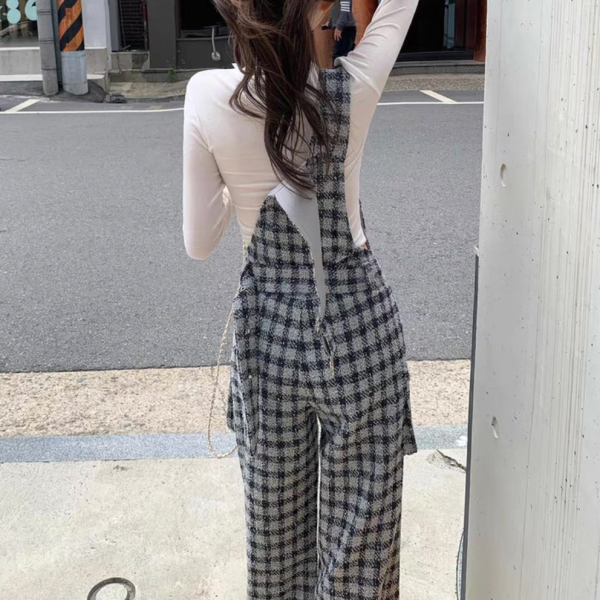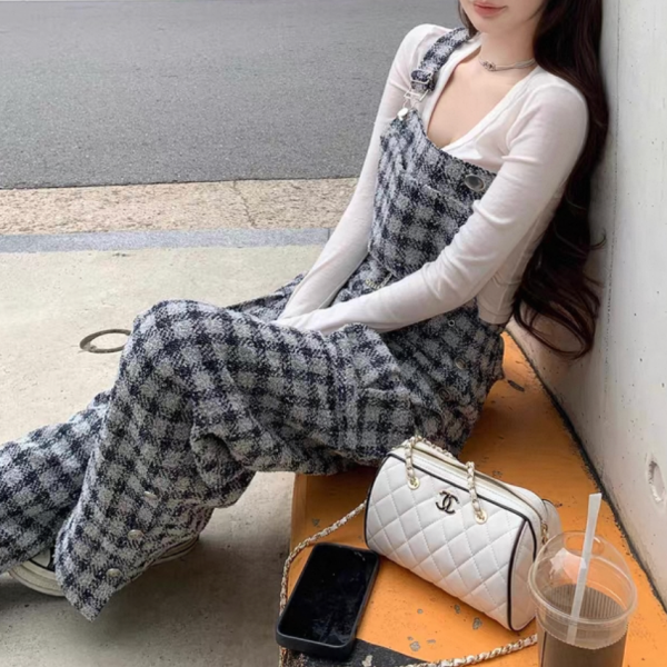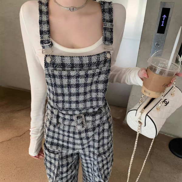 2色展開 ツイード調 チェック柄 ミックスカラー オールインワン ジャンプスーツ コンビネゾン オーバーオール つなぎが入荷しました。