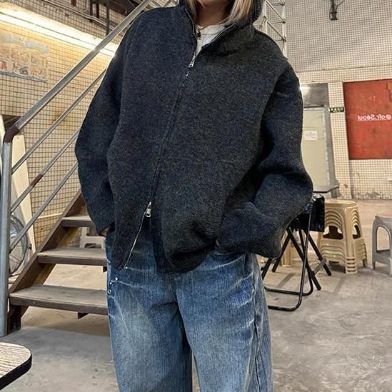 【大特価】CCYE 2色展開 無地 シンプル ニットパーカー ニットジャケット フーディー ジッパー ジップアップ ファスナー ワンホン インポート 通販