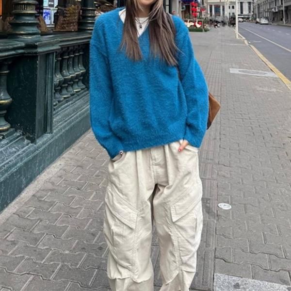 CCYE 2色展開 無地 シンプル Vネック オーバーサイズ モヘア フェイクファー ニット セーター トップス プルオーバー ワンホンが入荷しました。