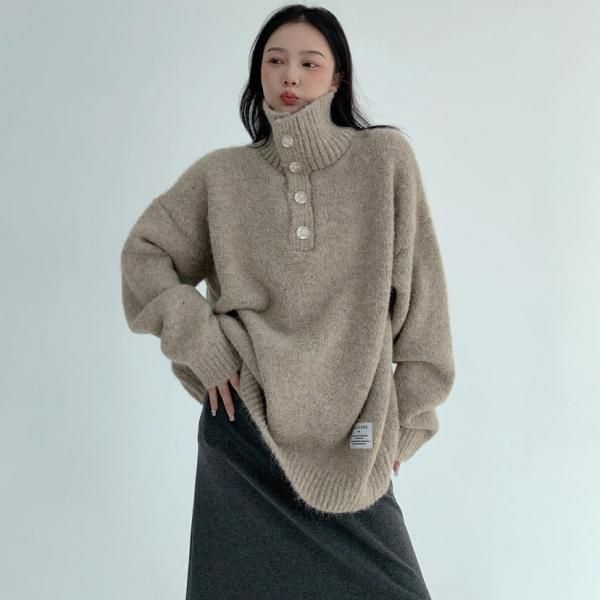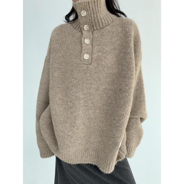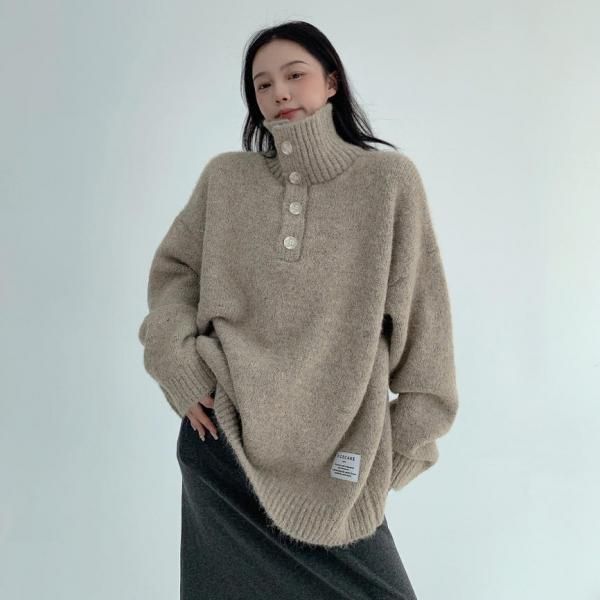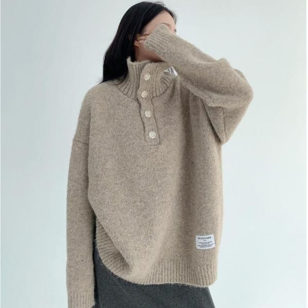 Youlaile studio RICE CAKE OISIS ベージュ 襟付き フロントボタン オーバーサイズ ニット セーター トップス プルオーバー ワンホン が入荷しました。