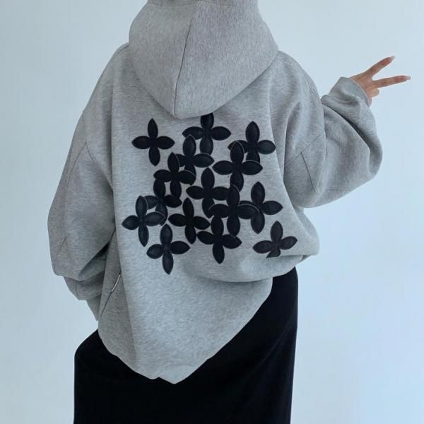 Youlaile studio RICE CAKE OISIS 2色展開 クロス 十字架 フラワーパッチ ワッペン バックプリント オーバーサイズ スウェット トレーナー プルオーバー パーカー フーディー トップス ワンホンが入荷しました。