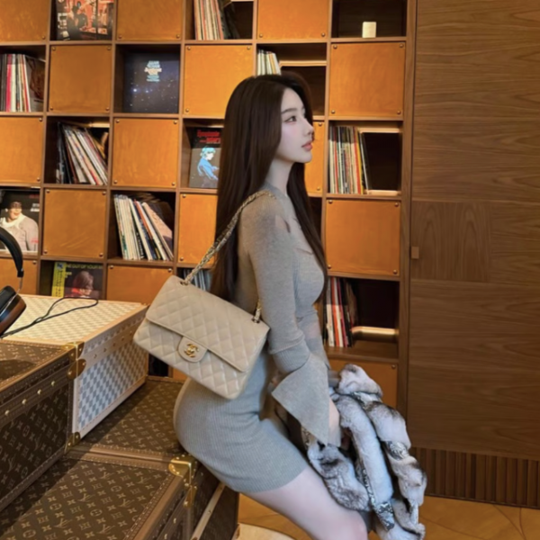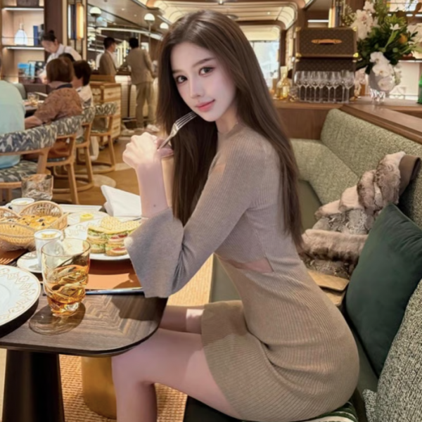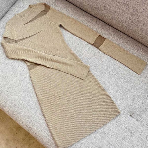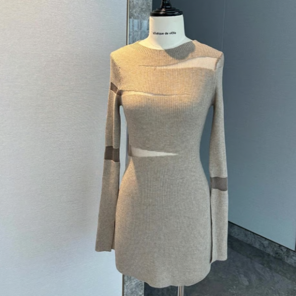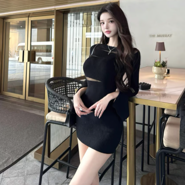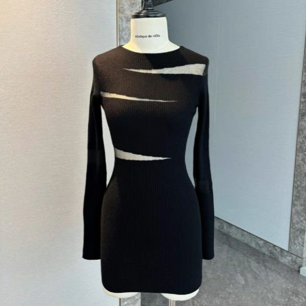 2色展開 無地 シンプル カットアウト シースルー クルーネック 長袖 タイトミニワンピース ニットワンピースが入荷しました。