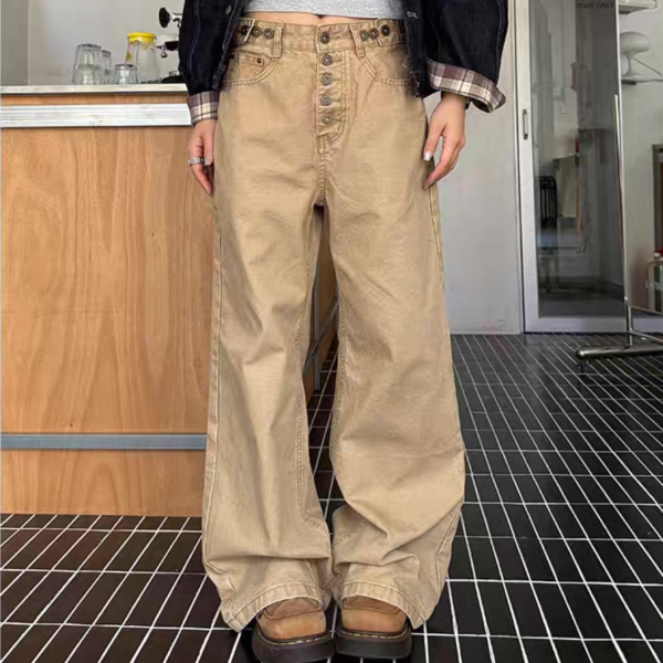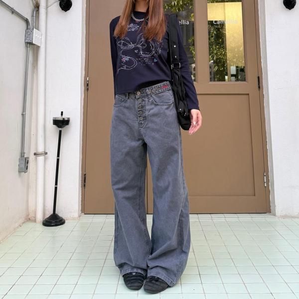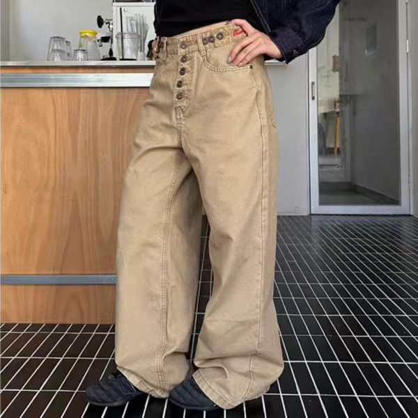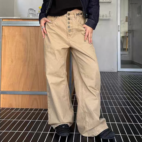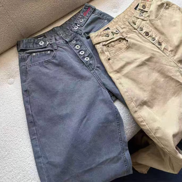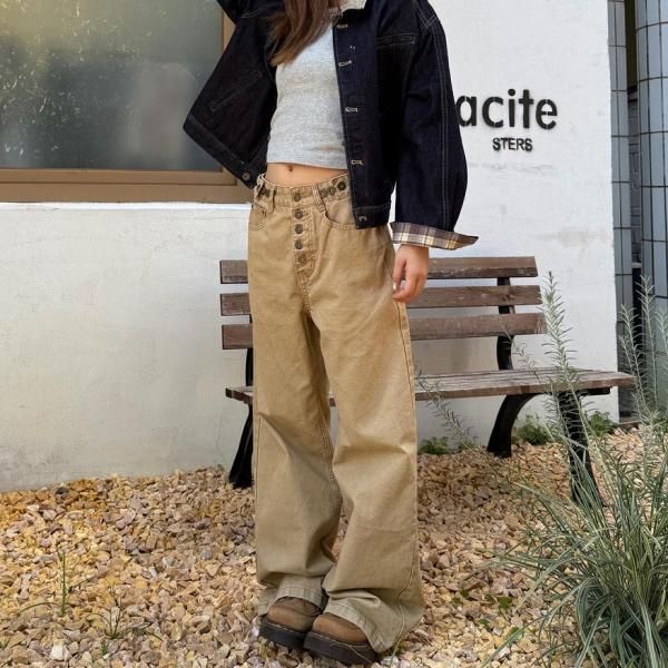 CCYE 2色展開 ビンテージ風 フロントボタン ウォッシュ加工 ストレートパンツ オーバーサイズ ロングパンツ ボタンダウンパンツ ワンホンが入荷しました。