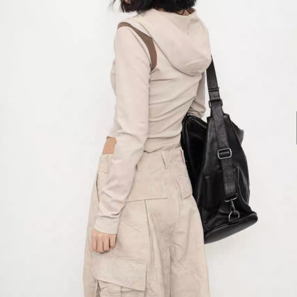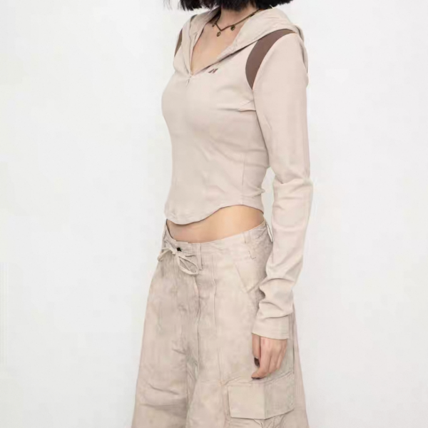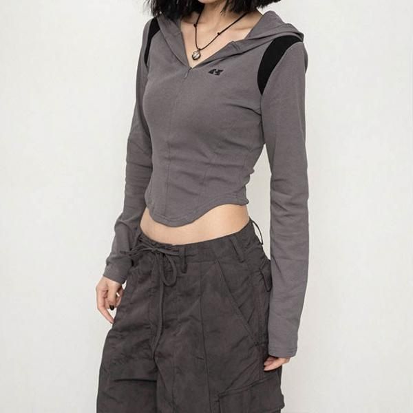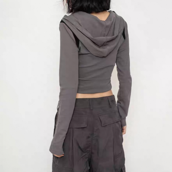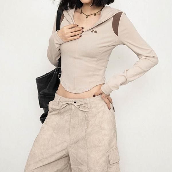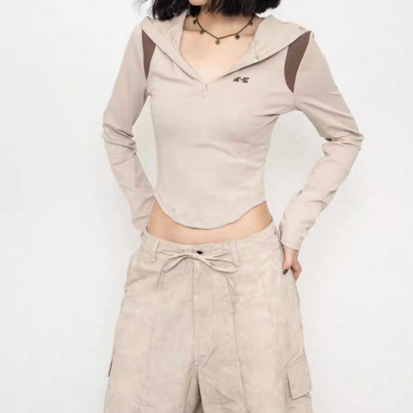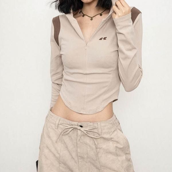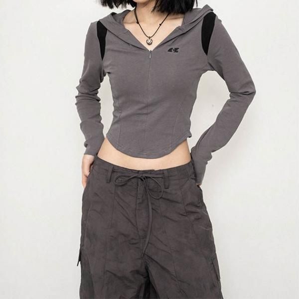 OCTTFLAB 2色展開 フロントジッパー ジップアップ ファスナー ラウンドヘム 長袖 パーカー フーディー クロップドトップス カットソー ワンホンが入荷しました。