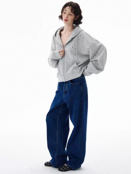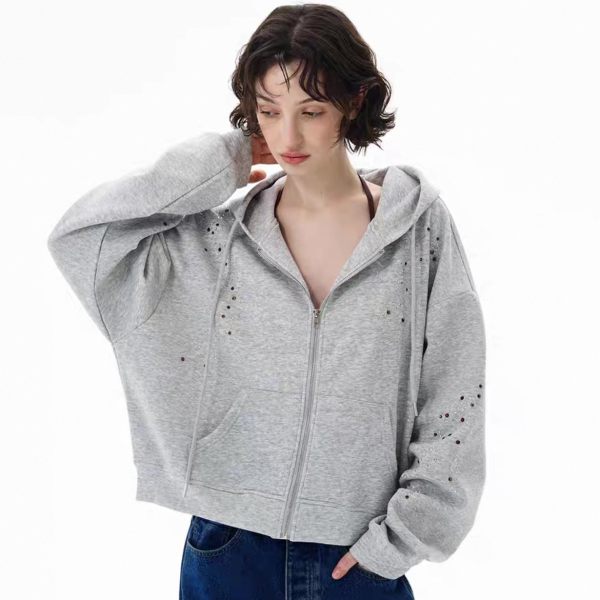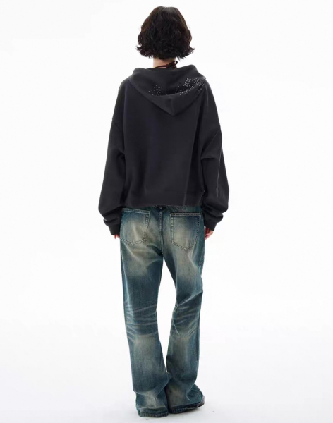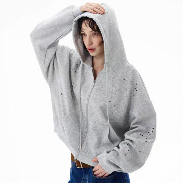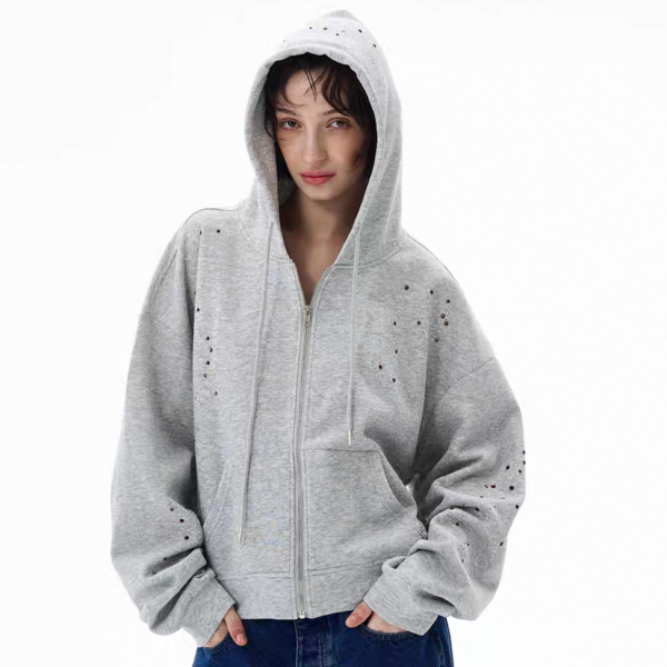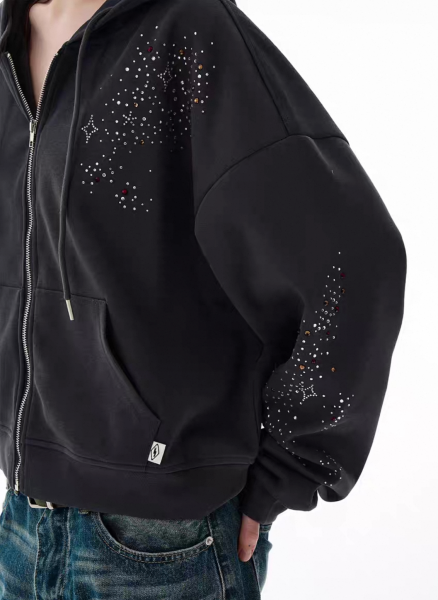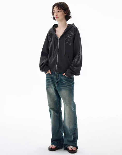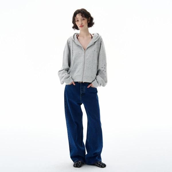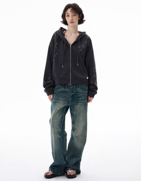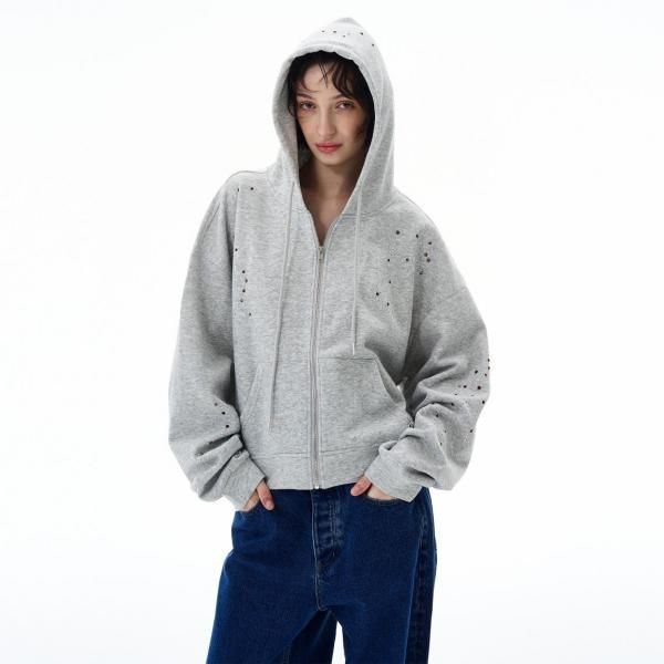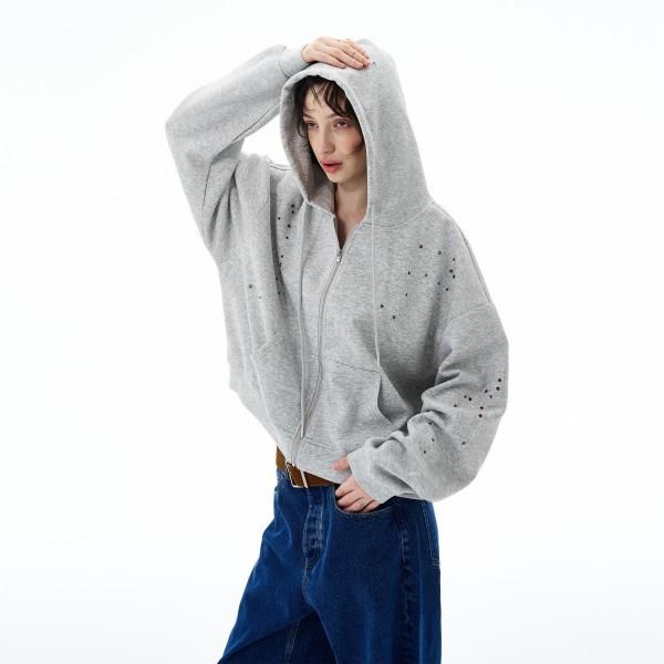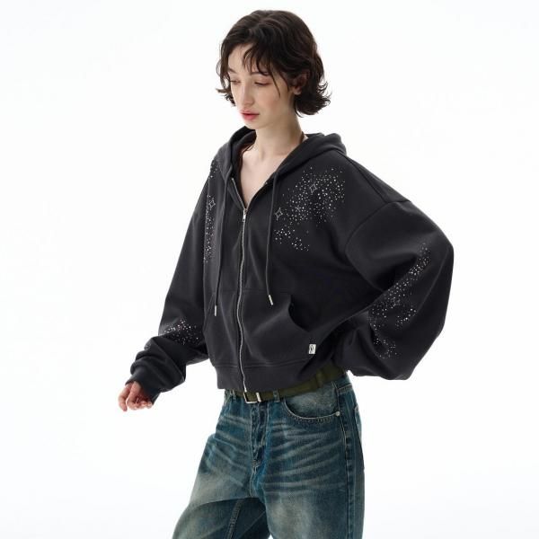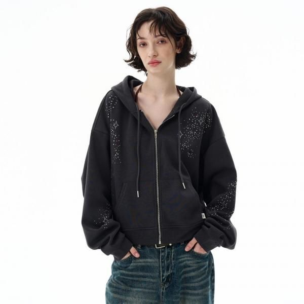 WEILANG STUDIO 2色展開 ラインストーン スタッズ ユニセックス ジッパー ジップアップ ファスナー スウェット パーカー フーディー ジャケット ワンホンが入荷しました。
