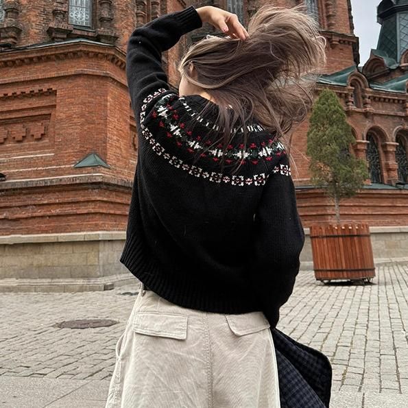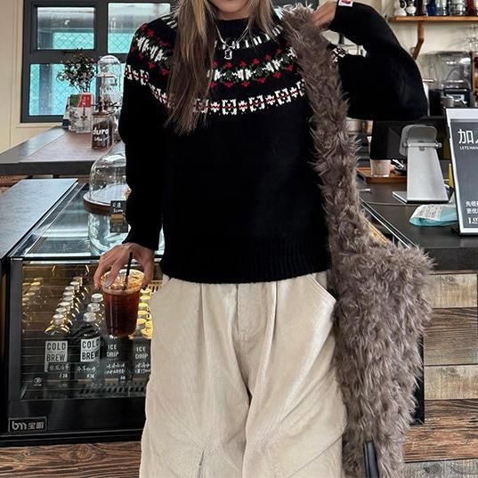 CCYE ブラック ノルディック柄 モックネック ニットジャケット ジッパー ジップアップ ファスナー ニットブルゾン セーター ニット トップス ワンホンが入荷しました。
