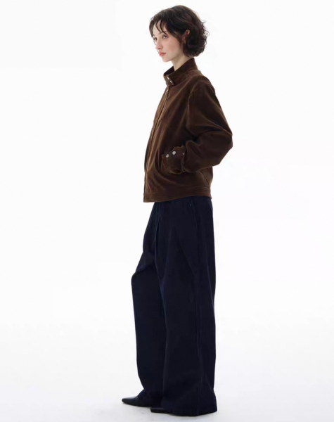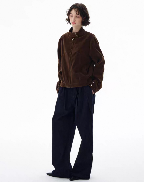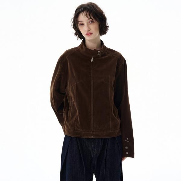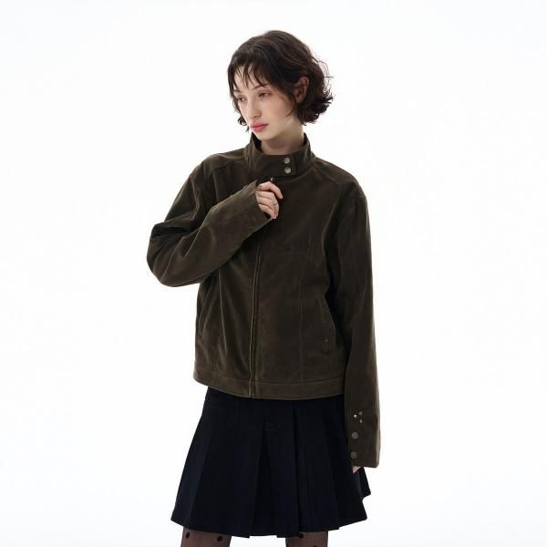 【大特価】WEILANG STUDIO 2色展開 スタンドカラー フェイクスエード 合皮 レザージャケット シングルライダースジャケット ワンホン