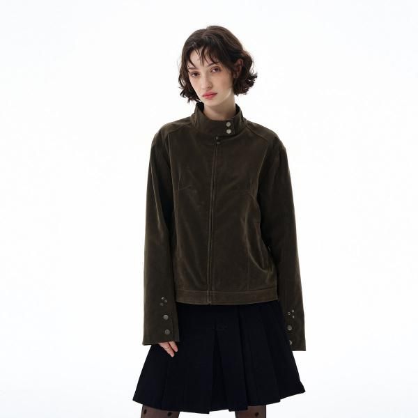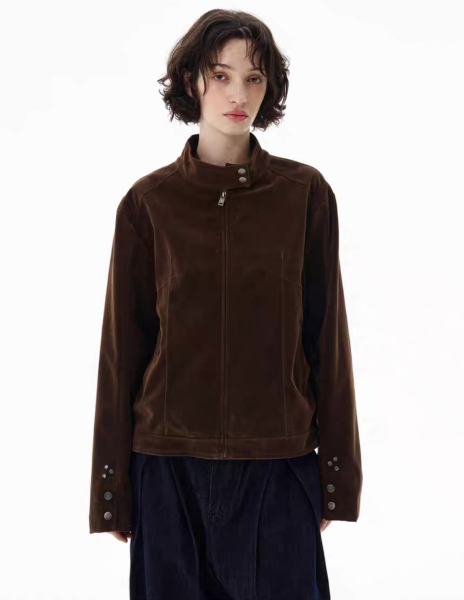 WEILANG STUDIO 2色展開 スタンドカラー フェイクスエード 合皮 レザージャケット シングルライダースジャケット ワンホンが入荷しました。