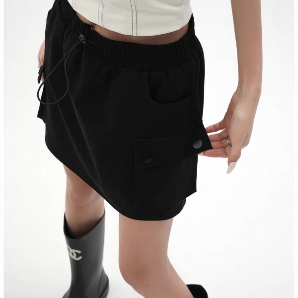 SRYS 無地 シンプル サイドポケット カーゴスカート ドローストリングウエスト ミニスカート カーゴミニスカートが入荷しました。