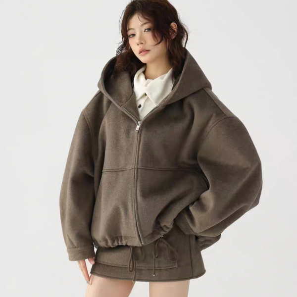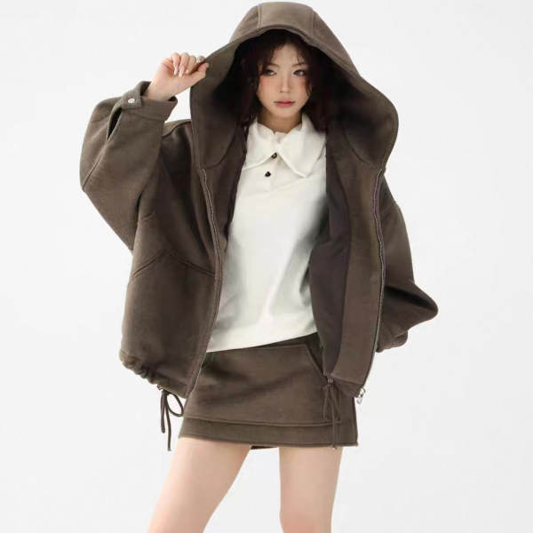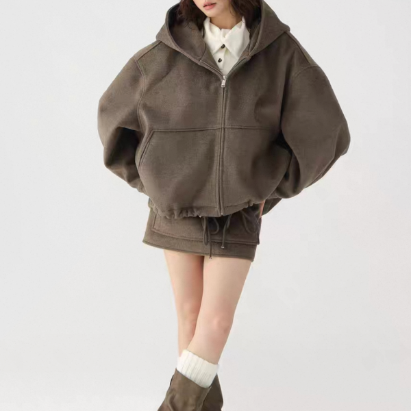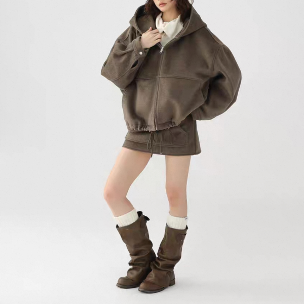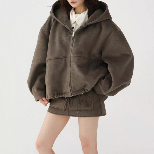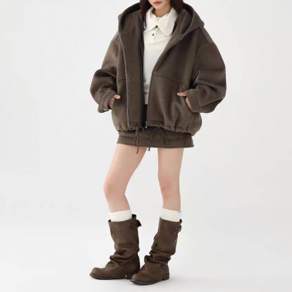 AceStudios ブラウン ジッパー ジップアップ ファスナー フリース パーカー フーディー ジャケット ミニスカート セットアップ ワンホン が入荷しました。