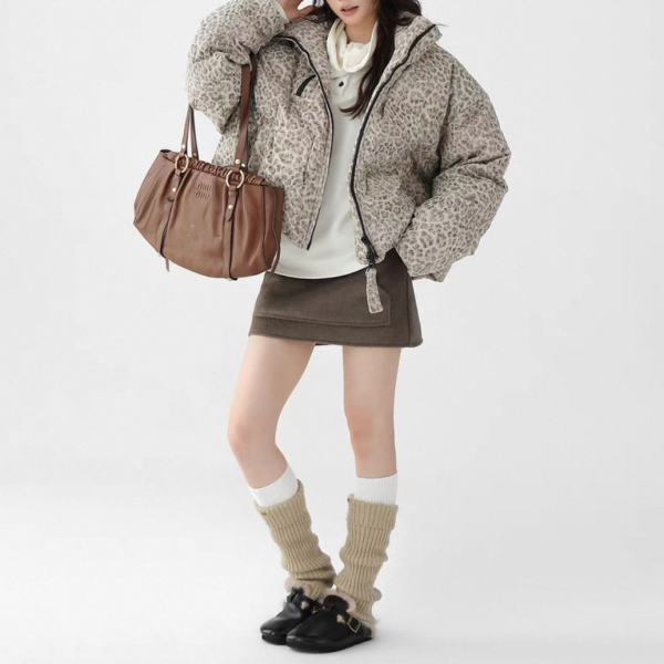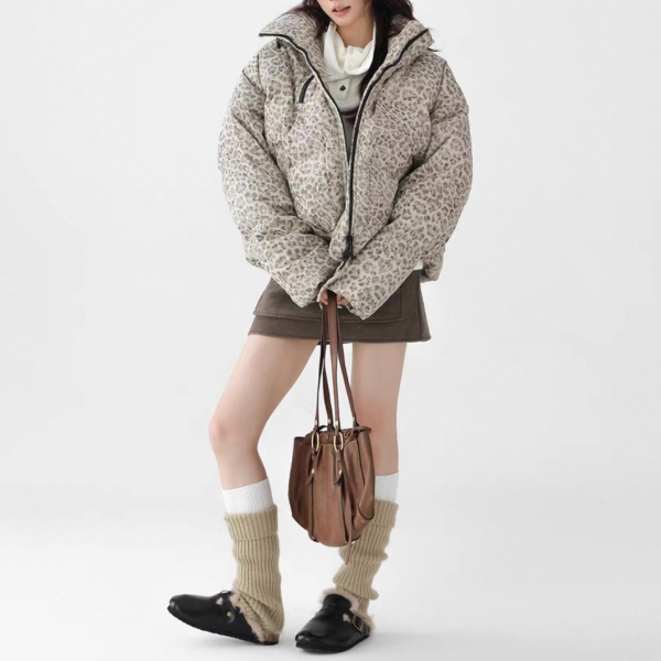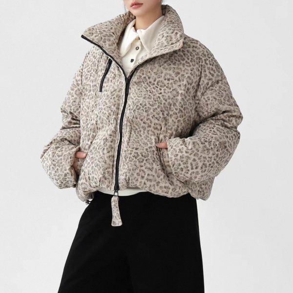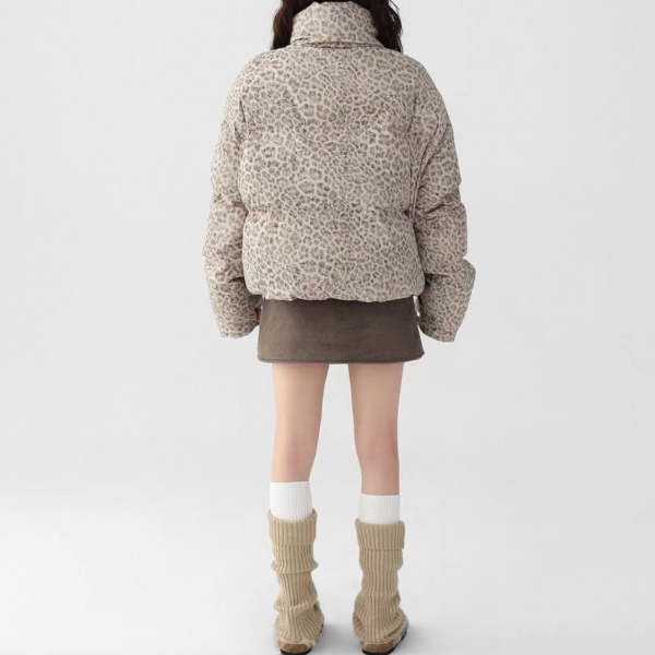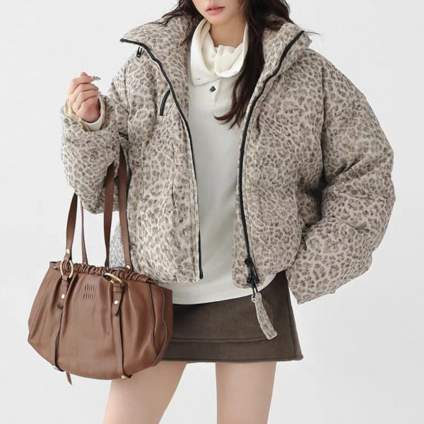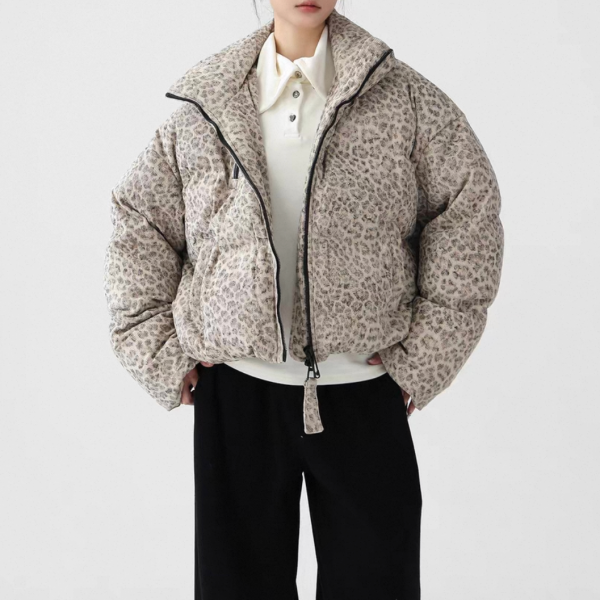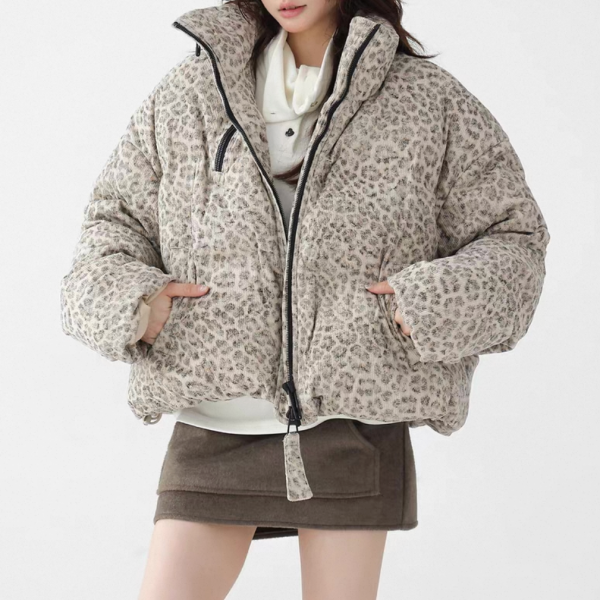 AceStudios アイボリーベージュ レオパード柄 ひょう柄 スタンドカラー ダウンジャケット パファージャケット ワンホンが入荷しました。