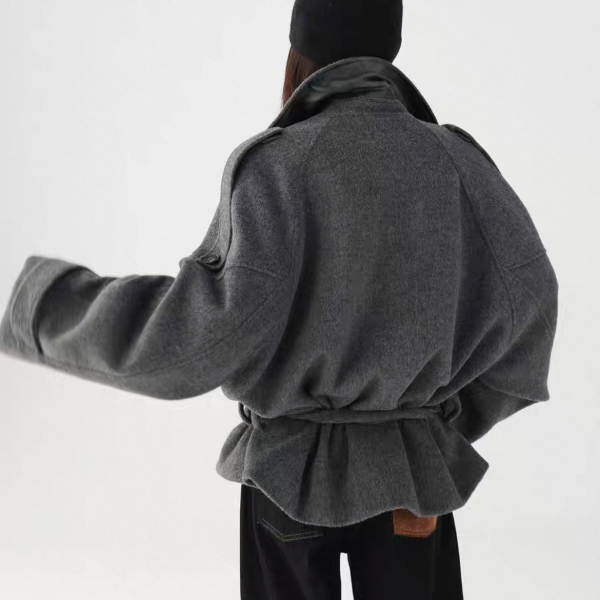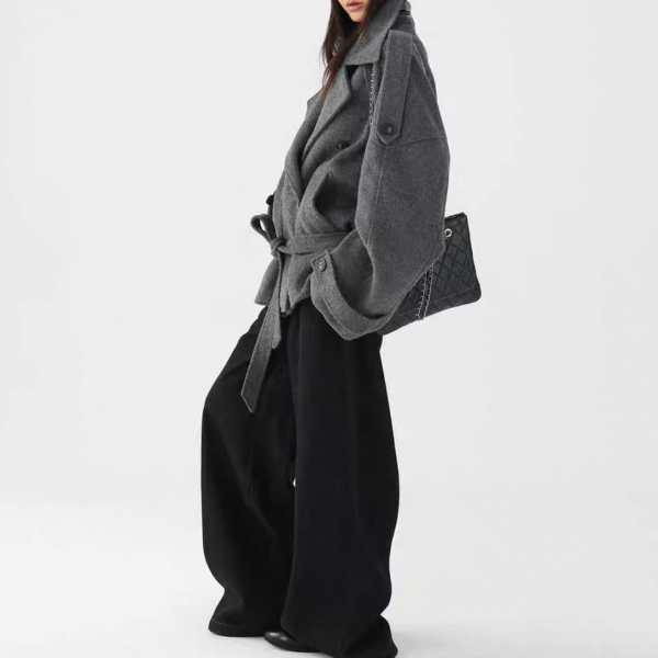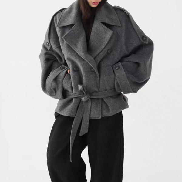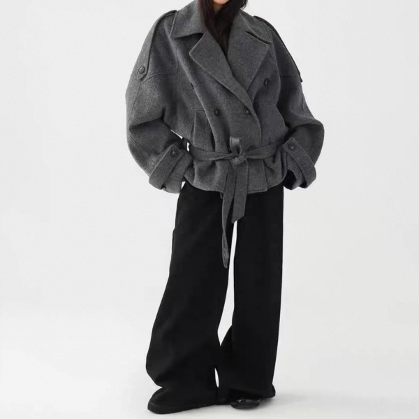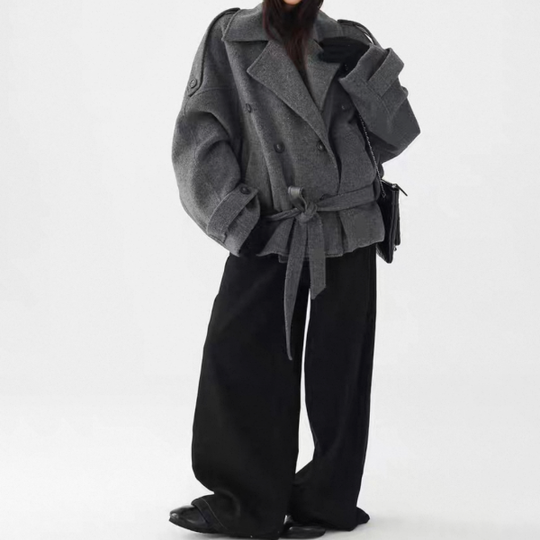 AceStudios グレー オーバーサイズ ミドル丈 ウール調コート ダブルボタン ダブルブレスト ウール調トレンチジャケット ワンホンが入荷しました。