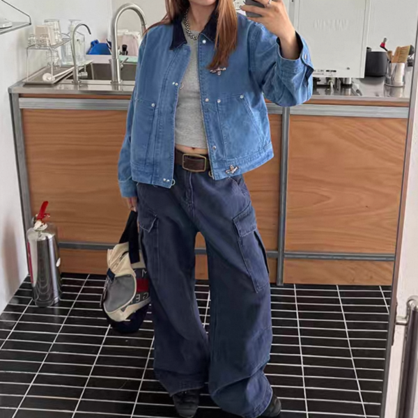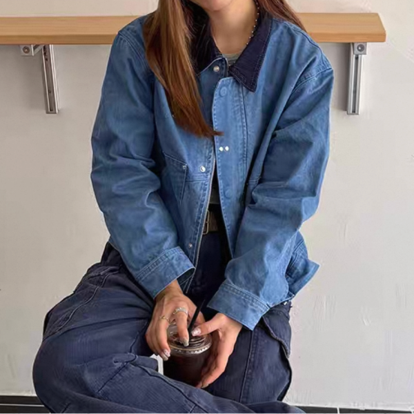 CCYE 2色展開 バイカラー 襟付き ジッパー ジップアップ ファスナー ブルゾン デニムジャケット カーゴジャケット トラッカージャケット ワンホンが入荷しました。