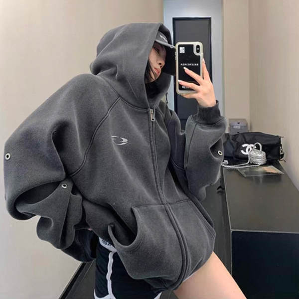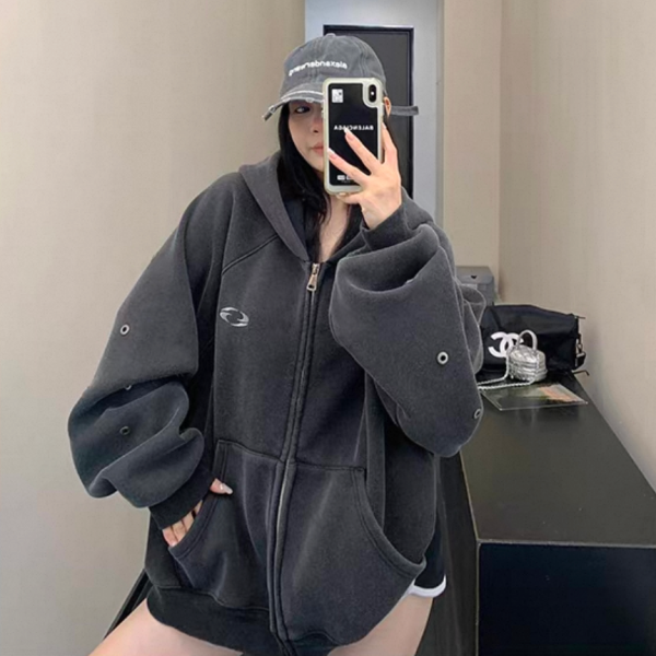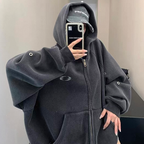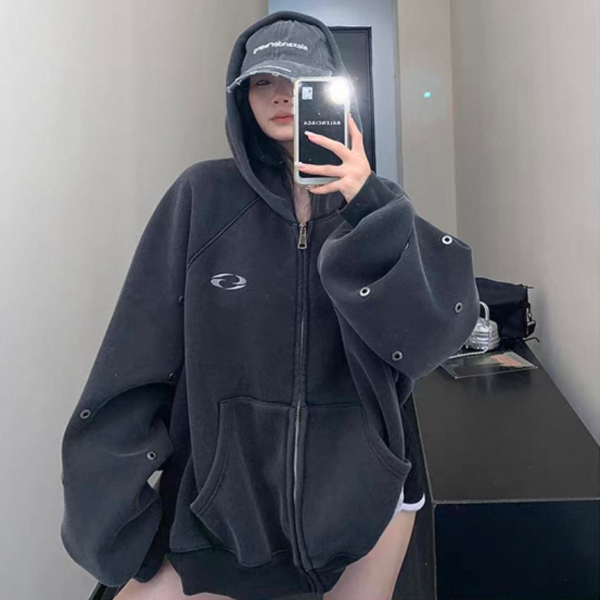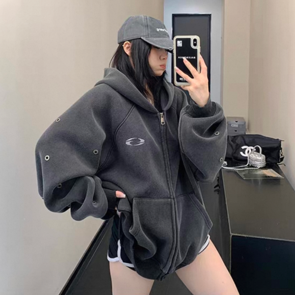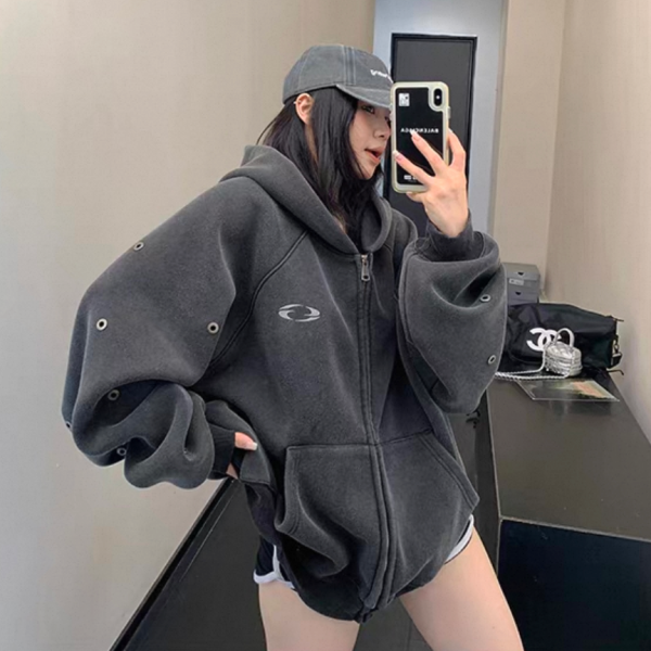 Youlaile studio RICE CAKE OISIS 2色展開 ハトメスタッズ オーバーサイズ スウェットパーカー ジッパー ジップアップ ファスナー パーカー フーディー ワンホンが入荷しました。