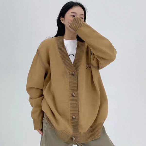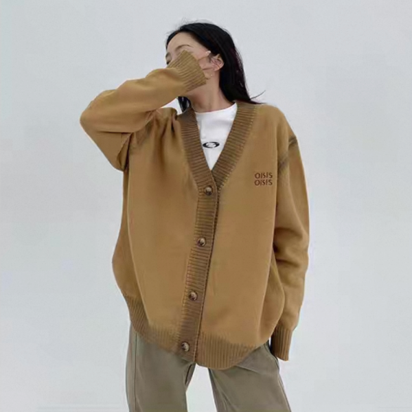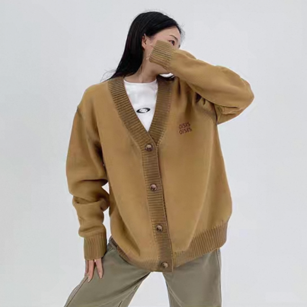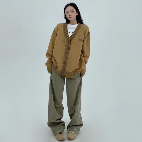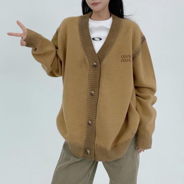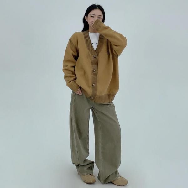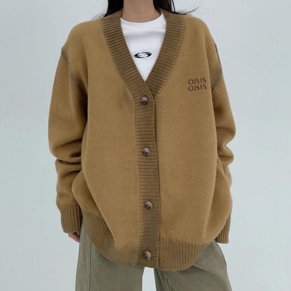 Youlaile studio RICE CAKE OISIS カーキベージュ Vネック フロントボタン 長袖 オーバーサイズ ニットカーディガン ワンホンが入荷しました。