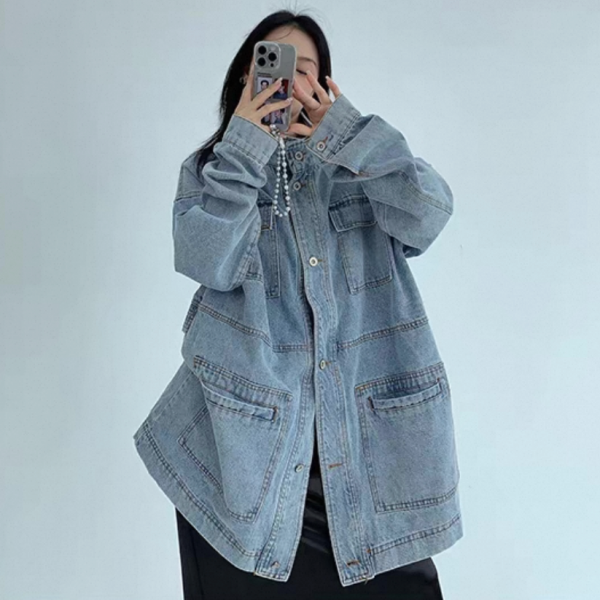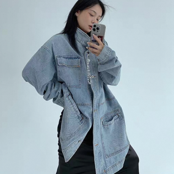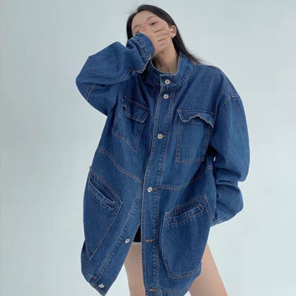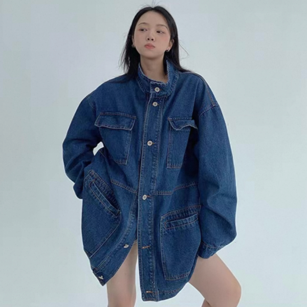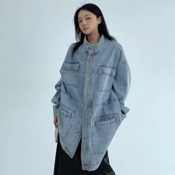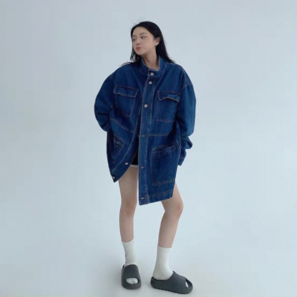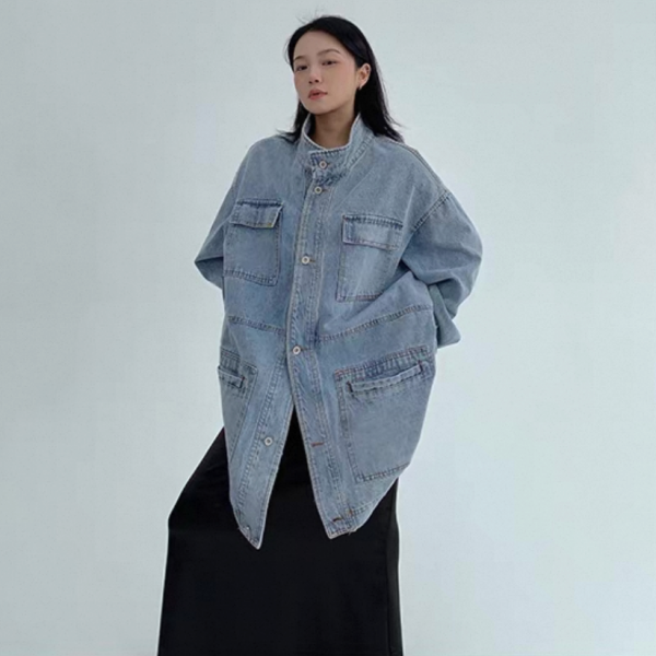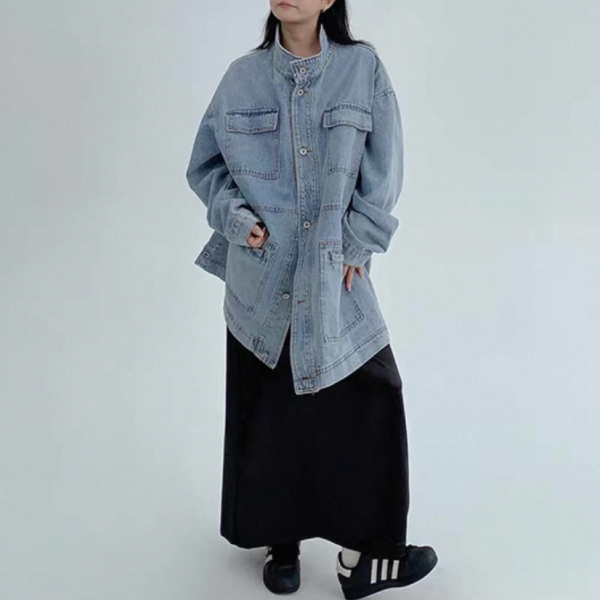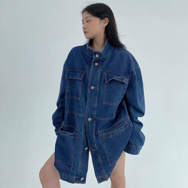【大特価】Youlaile studio RICE CAKE OISIS 2色展開 スタンドカラー オーバーサイズ デニムジャケット デニムワンピース デニムコート ワンホン