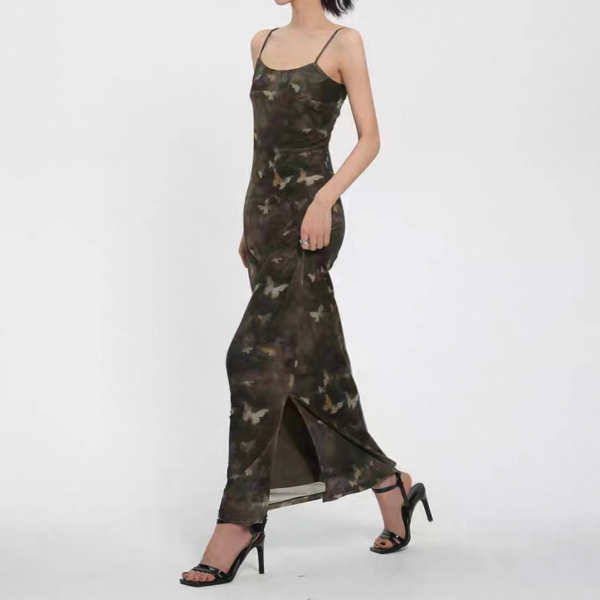 SRYS カモフラ カモフラージュ 迷彩柄 蝶々 バタフライ キャミソール マキシワンピース ロングワンピース サイドスリット ワンホンが入荷しました。