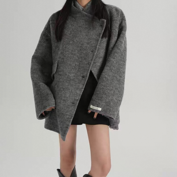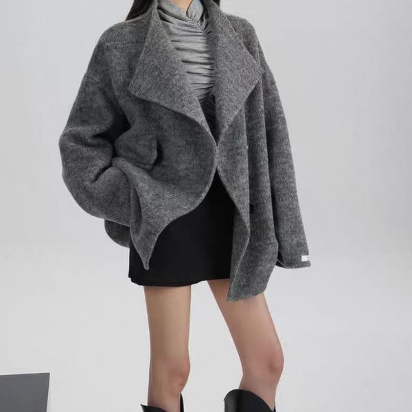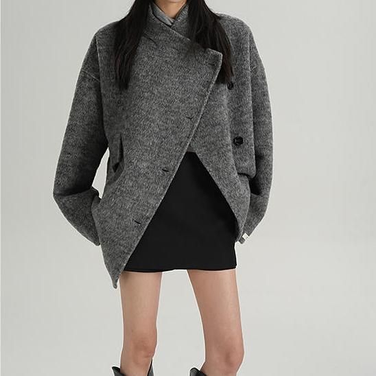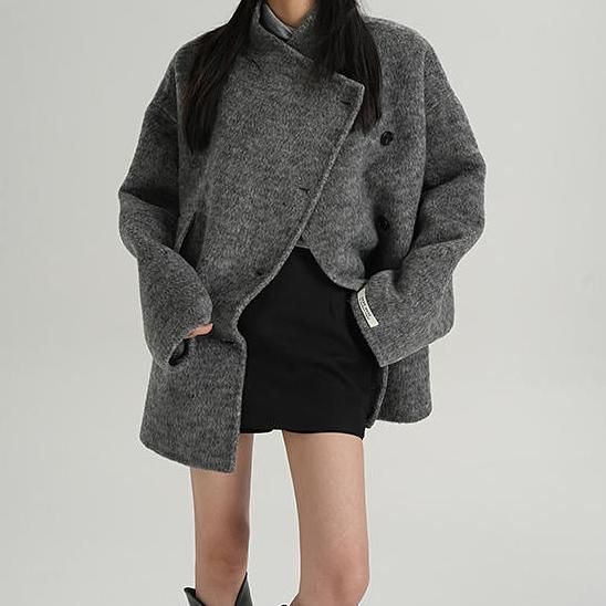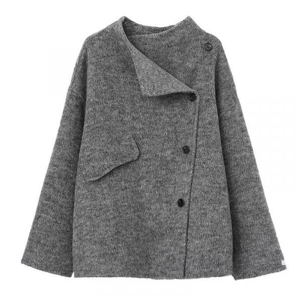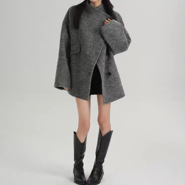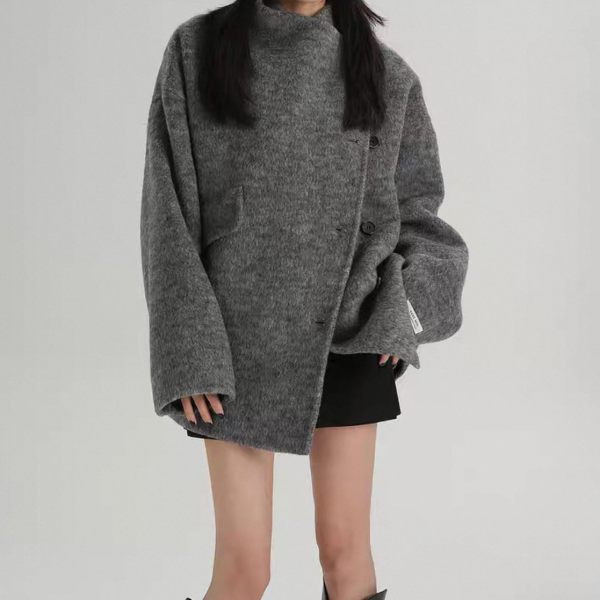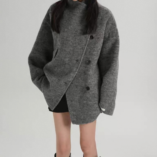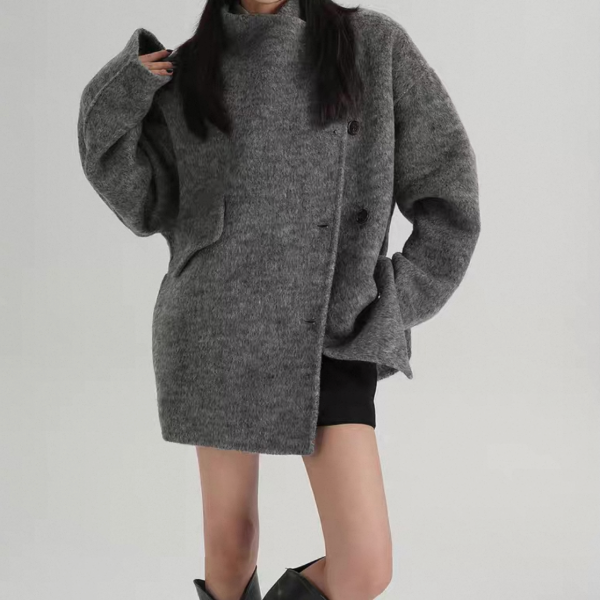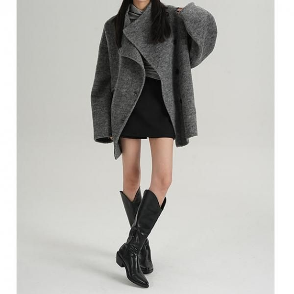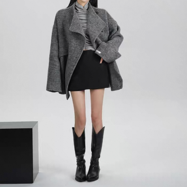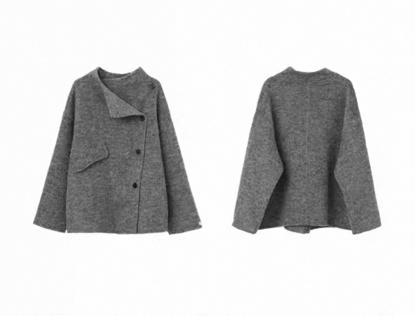 SRYS グレー ウール調 ダブルボタン ダブルブレスト スタンドカラー ミドル丈 2way ケープコート ジャケット ワンホンが入荷しました。