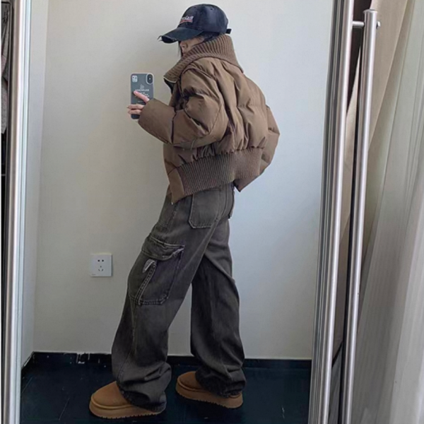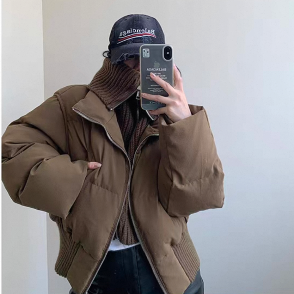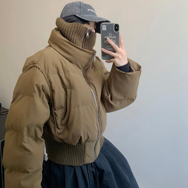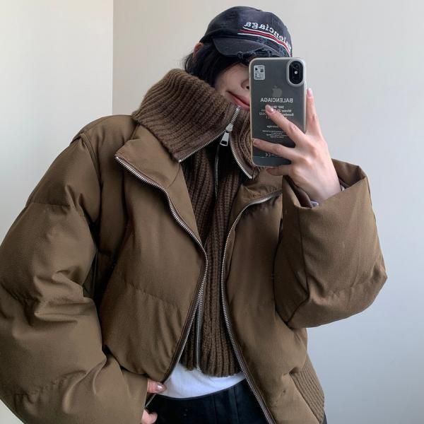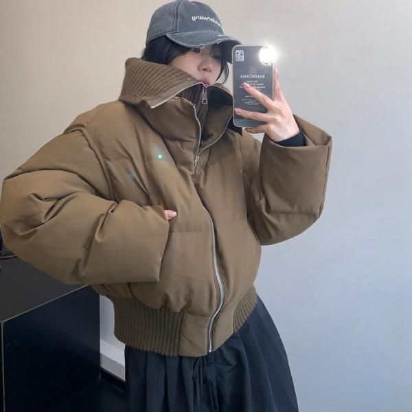Youlaile studio RICE CAKE OISIS ブラウン レイヤード 重ね着風 スタンドカラー ダウンジャケット パファージャケット が入荷しました。